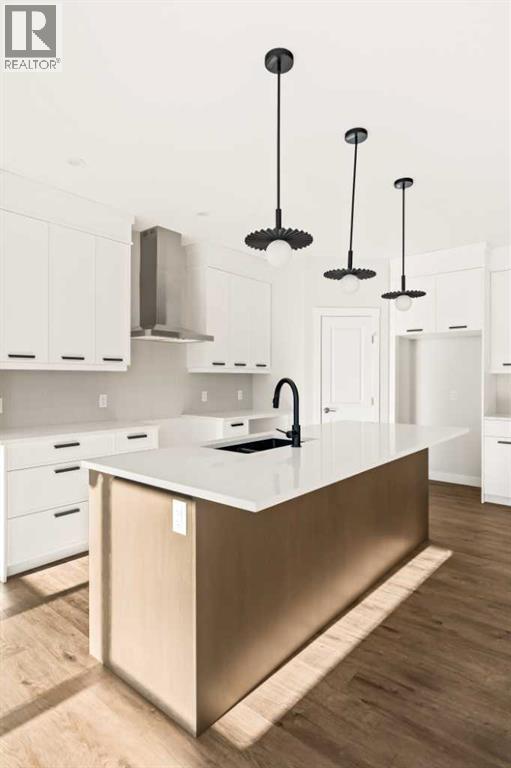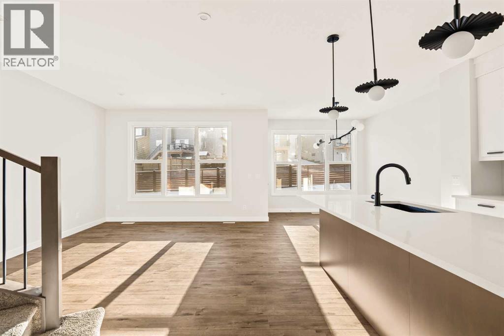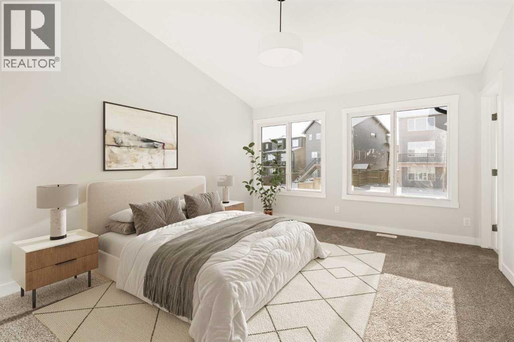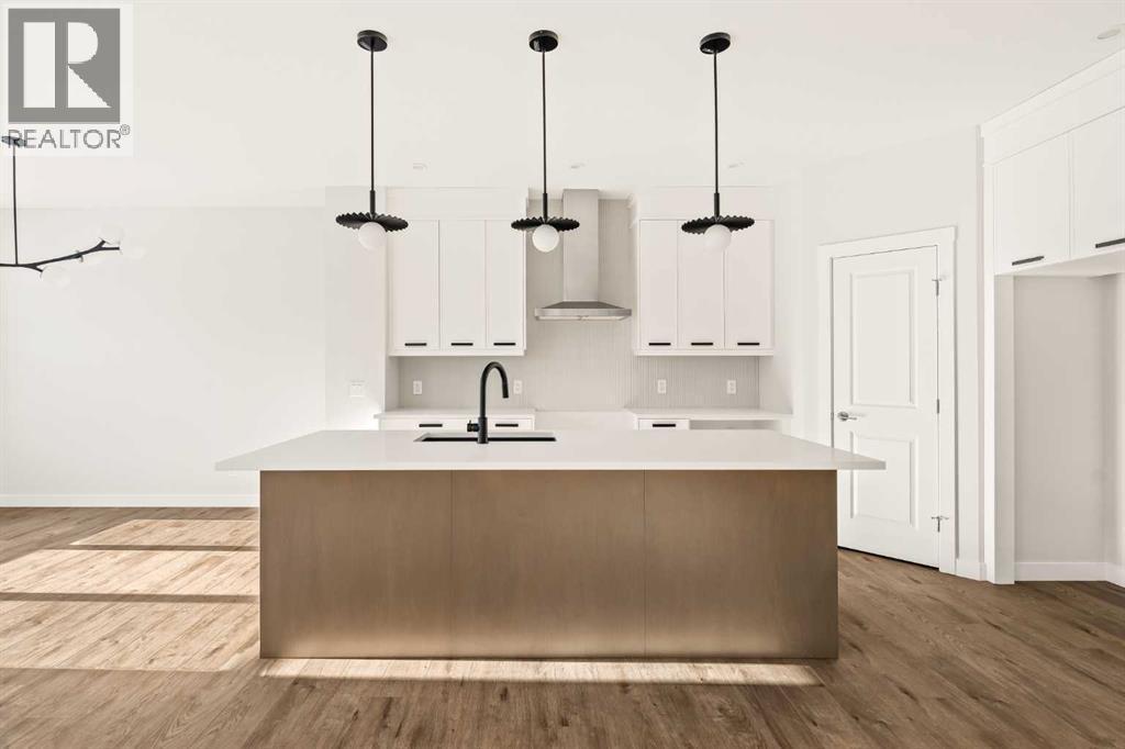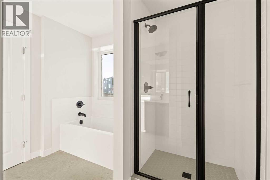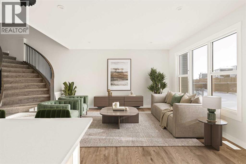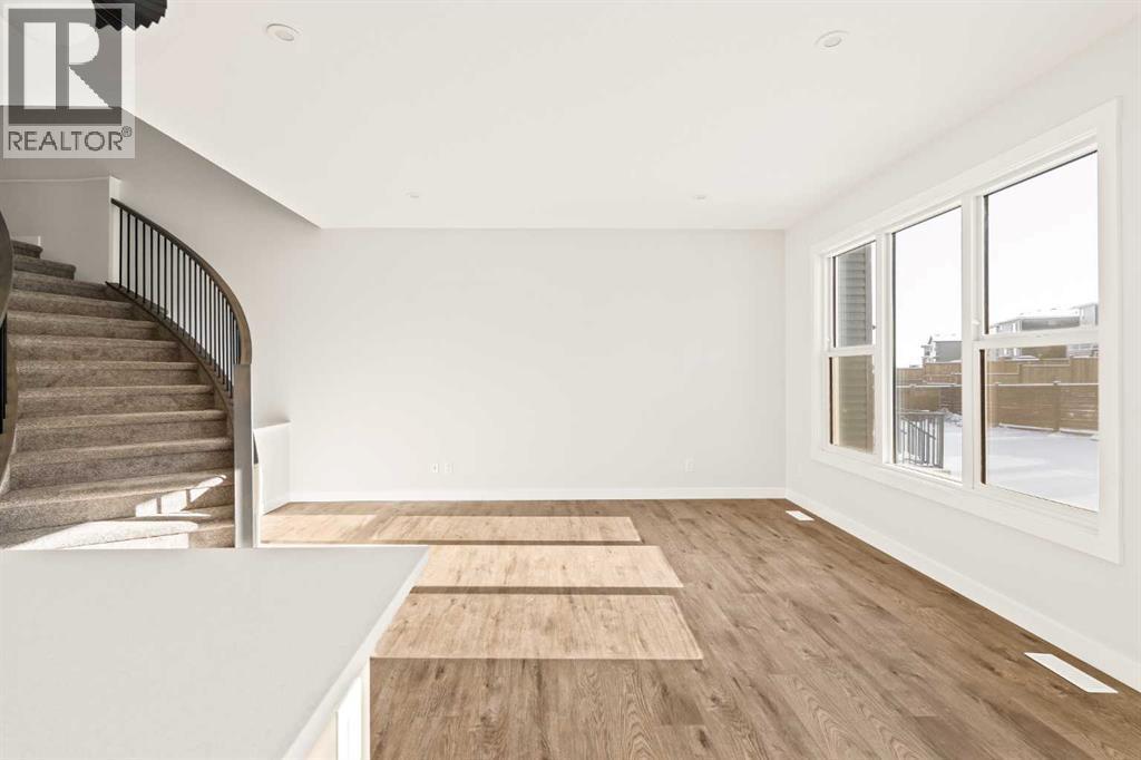 This Farmhouse elevation Robson 24 built by Brookfield Residential is a stunning brand new home in the heart of Livingston. Featuring 2 living areas, 3 bedrooms, 3 bathrooms and a home office / flex space on the main level that could be a 4th bedroom, this home has plenty of living space for a growing family + an undeveloped basement that awaits your imagination with ample space for a second living area, fourth bedroom and full bathroom. The home has a grand foyer with a front office space that could also be used for a children's play space, reading room or 4th bedroom - with a full bathroom located just outside the space. The centre of the main floor features a stunning spiral staircase that leads to the second level - offering unique design features rarely seen in a home of this size. The gourmet kitchen includes a built-in range hood and lower built-in microwave and is complete with a large corner pantry providing endless storage for those that like to cook and entertain. The timeless kitchen has white cabinets with a warm wood accent island and it overlooks both the living and dining areas - making this the perfect space to host guests. A wall of south-facing windows in both the living and dining rooms allow for natural light to pour through the space all day long. The main floor has a full bathroom and is complete with 9' ceilings creating a more open space. The spiral staircase leads to the second level where you'll find a central bonus room that separates the primary suite from the secondary bedrooms. The primary suite has vaulted ceilings and is complete with a 5 pc en suite including dual sinks, walk-in shower, and a soaker tub with window for added natural light - in addition to its incredibly large walk-in closet. Two more bedrooms, a full bathroom and a laundry room complete the second level. The basement is undeveloped and awaits the new owner's imagination - complete with bathroom rough-ins in place. Completing this home is a large and private south-fa cing backyard that provides optimal natural light and sunshine, both inside and outside, all year long. The 23' wide deep double attached garage is the perfect space to keep your vehicle and valuables safe all year long. Builder new home warranty & Alberta New Home Warranty are included with the purchase of this brand new home. Located in desirable Livingston, with an incredible HOA, this property is fully move-in ready and perfect for a growing family. (id:6769)