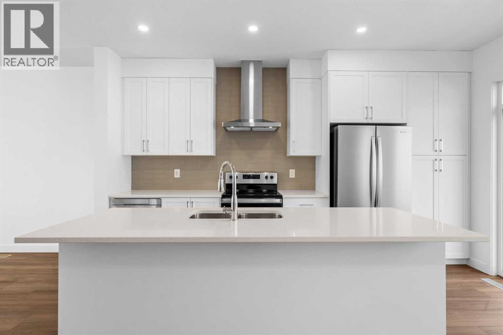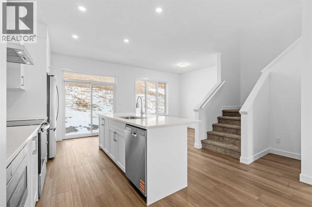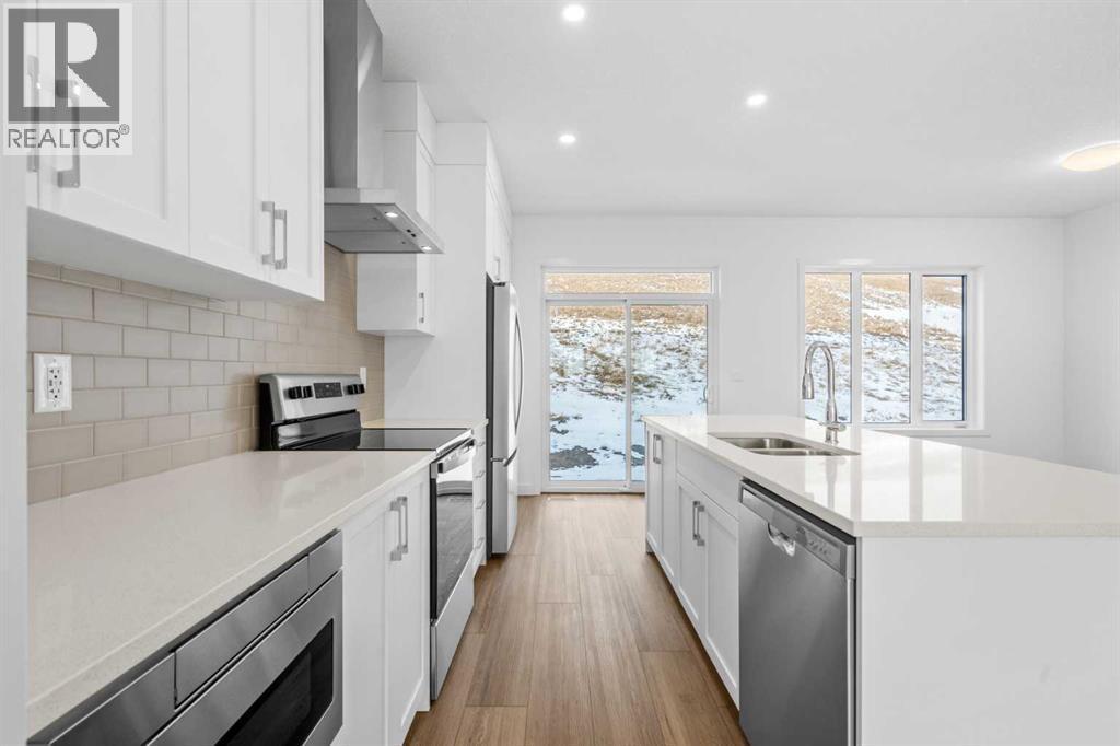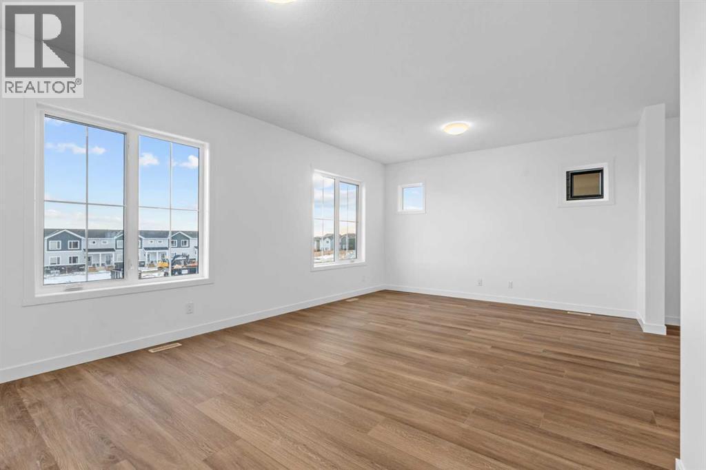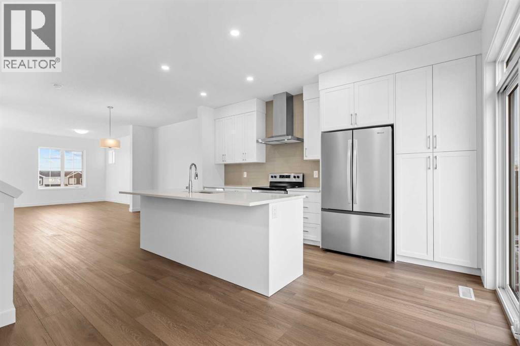 NEW BUILD SEMI-DETACHED | OVERSIZED SINGLE GARAGE | 3 BED / 2.5 BATH / 1995 SQ FT | WEST-FACING BACKYARD | IMMEDIATE POSSESSION – Welcome to this beautifully designed semi-detached duplex by Minto Communities, an award-winning Canadian builder, located in Wildflower, proudly voted Best New Community in Canada (2025). This vibrant, master-planned community in Airdrie is designed with lifestyle and connection in mind, offering an exciting mix of home styles in a neighbourhood built to grow with you.Finished in a charming traditional farmhouse elevation, this spacious home offers a thoughtfully planned layout ideal for modern family living. The main floor is designed for both everyday comfort and entertaining. The kitchen is positioned at the back of the home and features a central island, stainless steel appliances, and gorgeous modern finishes, with a bright breakfast nook just off the kitchen overlooking the west-facing backyard. Moving toward the centre of the home, you’ll find a dedicated dining area, while the large, light-filled living room anchors the front of the home. A convenient half bath and storage closet complete this level.Upstairs, the spacious primary bedroom easily accommodates a king-sized bed and includes a walk-in closet and a private 4-piece ensuite. Two additional well-sized bedrooms share this floor, one with a walk-in closet and the other featuring a sliding-door closet. A second 4-piece bathroom and a large, functional laundry room round out the upper level.The ground level welcomes you with a beautiful entryway that leads to the rest of the home and an undeveloped space that offers flexibility for future development. This level also includes additional storage space, a mechanical room, and direct access to the oversized single attached garage. A large driveway provides ample parking, adding everyday convenience.Residents of Wildflower enjoy exclusive access to The Hillside Hub, a standout amenity centre featuring Airdrie’s first outd oor pool, a hot tub, an open-air sports court, and a variety of shared indoor and outdoor spaces designed for gathering, recreation, or quiet retreat. With nearby parks, pathways, amenities, and easy access to major routes, Wildflower delivers a truly well-rounded lifestyle.Combining award-winning community planning, modern design, and immediate possession, this is an outstanding opportunity to own a stylish new home in one of Canada’s most celebrated communities. Don’t miss your chance to make Wildflower home! Book your visit today! (id:6769)