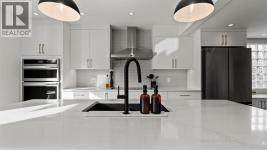 Welcome to this beautifully updated two-storey home in the highly desirable community of MacEwan Glen, offering the perfect balance of thoughtful renovations, functional living space, and an exceptional location. Situated on a corner lot and just steps from Nose Hill Park, this home provides immediate access to scenic walking paths and green space, while also offering quick connections to Stoney Trail, Deerfoot Trail, and a convenient commute to downtown via 14th Street.The home offers 1,373 sq ft of above-grade living space, plus an additional 543 sq ft in the fully developed basement, providing over 1,900 sq ft of total living space designed to adapt to a variety of lifestyles.The main floor has been fully renovated and showcases a bright, modern open-concept layout ideal for both everyday living and entertaining. Wide-plank flooring, recessed lighting, and large windows create a warm and welcoming atmosphere throughout. The living room flows seamlessly into the stunning kitchen, where crisp white cabinetry, quartz countertops, contrasting dark accents, and a large centre island with seating take centre stage. High-end stainless steel appliances include an induction cooktop, built-in wall ovens, and a statement range hood, while stylish pendant lighting and a sleek tile backsplash complete the space. The adjacent dining area offers direct access to the west-facing backyard, perfect for enjoying afternoon sun and evening sunsets. A convenient powder room completes the main level.Upstairs, the home features three well-sized bedrooms, including a bright and inviting primary retreat with a walk-in closet and private ensuite bathroom. Two additional bedrooms provide excellent flexibility for children, guests, or a home office, all finished in a soft, neutral palette. A full main bathroom completes the upper level.The fully developed basement adds valuable and versatile living space. A spacious recreation room offers the ideal setting for movie nights, a play area, or a second family room. An additional fourth bedroom is perfect for guests or older children, while a dedicated office or flex space supports work-from-home needs. A full bathroom and a separate laundry room complete the lower level, creating a functional and comfortable extension of the home.Set in a quiet, family-friendly neighbourhood close to schools, parks, and everyday amenities, this MacEwan Glen home delivers exceptional lifestyle value combining proximity to nature, modern updates, and outstanding access to all areas of the city. (id:6769)