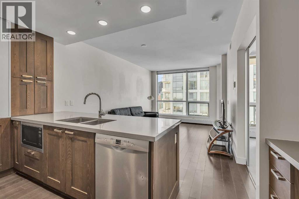 Welcome to Waterfront, one of Calgary’s most prestigious condo developments, where luxury meets convenience in the heart of downtown. This stunning 1-bedroom, 1-bathroom unit on the 14th floor offers Bow River views through expansive floor-to-ceiling windows, filling the space with natural light. Designed for modern urban living, the open-concept layout features a gourmet kitchen with sleek quartz countertops, high-end built-in appliances, a gas cooktop, and rich wood cabinetry. The spacious living and dining area provides the perfect setting for entertaining or relaxing while enjoying the vibrant downtown atmosphere. The primary bedroom includes a walk-through closet leading to a spa-like 4-piece bathroom. In-suite laundry and central air conditioning add to the convenience. Residents of Waterfront enjoy world-class amenities, including a fully equipped fitness center, yoga studio, hot tub, sauna, social lounge, movie theatre, and concierge service. Located steps from Prince’s Island Park, the Bow River pathway system, Chinatown, and the downtown core, this home offers the ultimate in inner-city convenience and lifestyle. This is a rare opportunity for first-time buyers, professionals, and investors looking for a premium condo in a prime location. (id:6769)