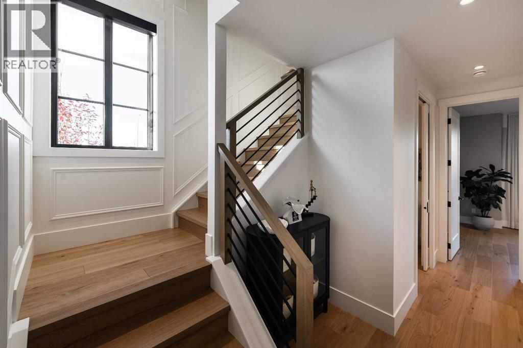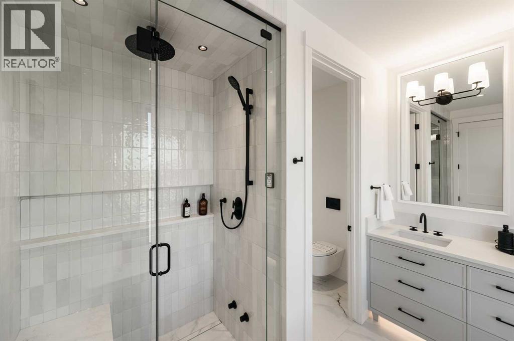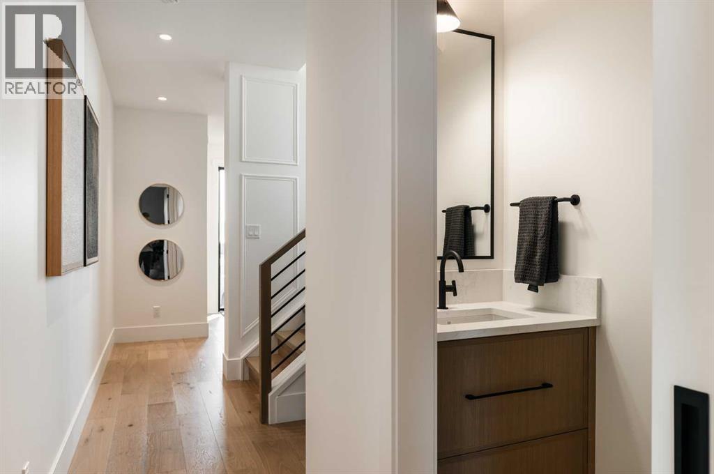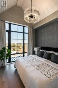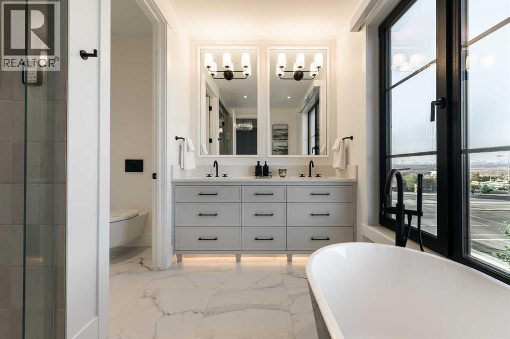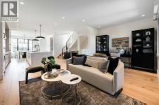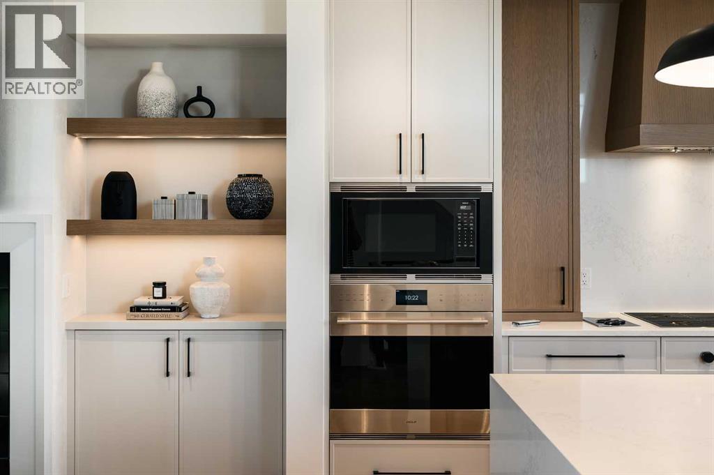 Nestled in the heart of Seventeen Hundred at Aspen Estates, this luxurious townhome with The Dalton floorplan (a design finalist with the 2025 BILD Calgary Awards) has been carefully crafted by RareBuilt Homes & offers over 2,700 sq ft of refined living space, complete with 3 bedrooms, amazing mountain views and exceptional design throughout. The airy main level with lofty 9’ ceilings, showcases engineered hardwood flooring, and expansive high end European triple glazed tilt & turn windows that flood the home with natural light. A spacious great room centers around a striking feature fireplace and opens to a large balcony with a louvered roof—perfect for year round enjoyment. A dedicated office space provides an ideal setting for work from home days. The beautifully appointed kitchen features quartz countertops, a generous island with eating bar, full height custom cabinetry, a walk in pantry, and a premium appliance package. The dining area comfortably accommodates gatherings with family and friends. A stylish 2 piece powder room completes the main level. Upstairs, the second level hosts three well proportioned bedrooms, a 4 piece bath, and convenient laundry facilities. The serene primary retreat with soaring vaulted ceiling includes a spacious walk in closet and a private 5 piece ensuite with in floor heat, dual sinks, a freestanding soaker tub, and a separate shower. The lower level offers impressive versatility with a large flex room and direct access to a walk out patio—ideal for a media room, fitness area, or family space. This level also includes a mudroom connecting to the fully finished & painted oversized double attached garage that’s EV charger ready. Additional highlights include an elevator serving all three levels, central air conditioning, six solar panels, and concrete demising walls for enhanced privacy and noise reduction. Set within an exclusive complex spanning nearly 9 acres—5.5 of which are dedicated to green space—this residence delivers an u nparalleled standard of comfort, quality, and sophisticated living. (id:6769)