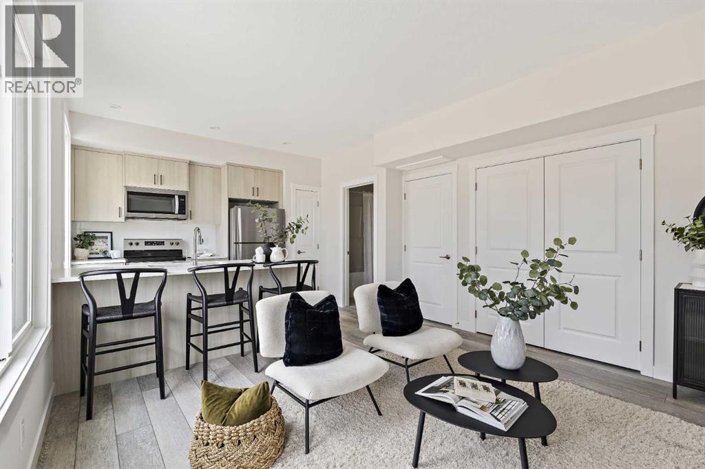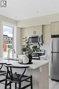 **LIMITED TIME PROMOTION - PICK 2 of 3 - (1) FREE A/C SUPPLY & INSTALL, (2) TWO FREE YEARS OF CONDO FEES, or (3) $5,000 TOWARDS WINDOW COVERINGS!** Introducing Brightside at Seton by Brookfield Residential – where style meets convenience. This 1-bedroom, 1-bathroom townhome is ideal for first-time buyers or investors, offering an open-concept layout with upgraded finishes throughout. The Coltrane model features a modern kitchen with quartz countertops, stainless steel appliances, full-height cabinetry with crown moulding, a pantry, and a spacious peninsula island with pendant lighting providing additional seating space. West-facing windows fill the living and dining areas with natural light, creating a bright and welcoming atmosphere all day long. Upgraded resilient LVP flooring flows throughout the entire unit and into the primary bedroom, meaning no carpet and a timeless look throughout. The primary suite offers a large closet and patio views, while a 4-piece bath, in-suite laundry, and extra storage add to everyday comfort. Complete with outdoor patio space with BBQ gas-line and a titled parking stall - this home has it all! Located in Seton, one of Calgary’s most vibrant master-planned communities, this home offers incredible value today and in the future. Enjoy unmatched amenities right outside your door, including the YMCA, South Health Campus, restaurants, shops, grocery stores, and parks. With builder warranty and Alberta New Home Warranty included, you can purchase with peace of mind. Don’t miss the chance to own a brand-new, maintenance-free home with incredible value in the heart of Seton. **Please note: photos are from a previous build and finishes may vary. (id:6769)