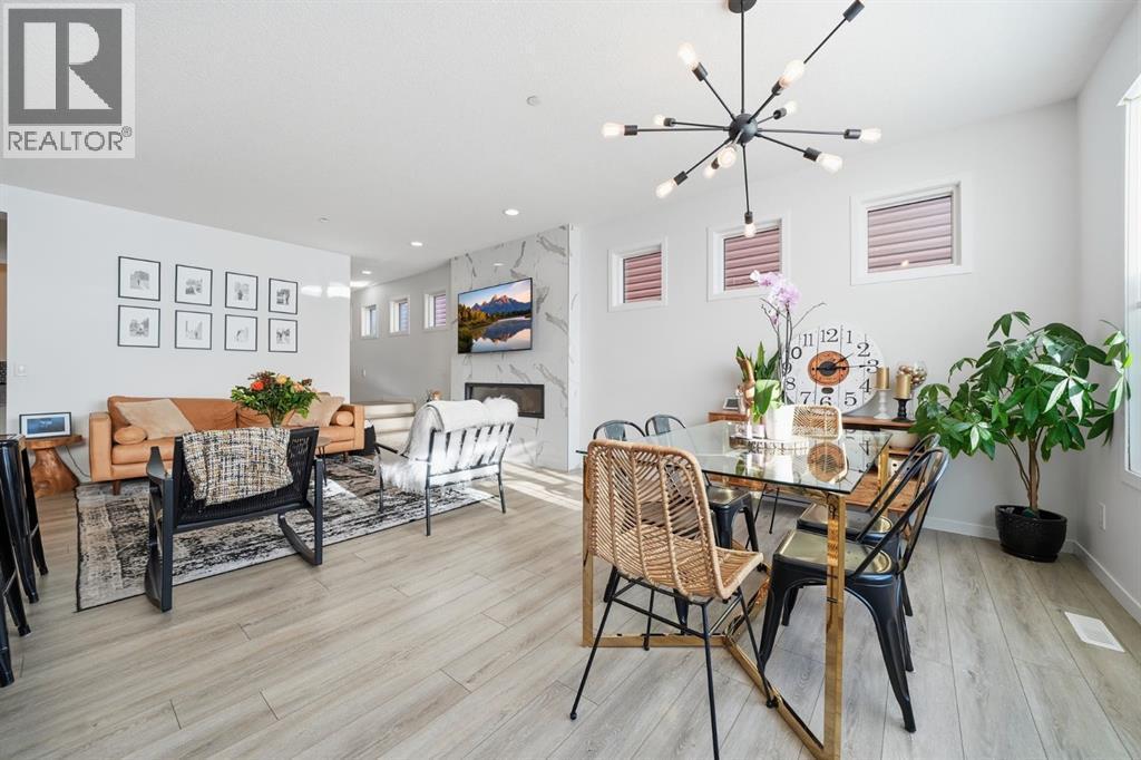 Welcome to this beautifully designed two storey home in the vibrant, family friendly community of Livingston. Warm, stylish, and move in ready, this meticulously maintained residence offers over 2,000 square feet of thoughtfully planned living space, balancing comfort, functionality, and everyday ease.The main level welcomes you with a spacious foyer and convenient powder room before opening into a bright and inviting living area anchored by a cozy fireplace. Designed for both relaxed family evenings and effortless entertaining, the layout flows seamlessly into the dining space and an expansive chef inspired kitchen. Complete with stainless steel appliances, generous cabinetry, pantry storage, and ample counter space, this kitchen offers excellent prep areas and room to gather around the island, making it the true heart of the home. A dedicated mudroom connects directly to the double attached garage, adding practicality and organization to busy routines.Upstairs, the second level is exceptionally well planned. A large bonus room provides flexible space for movie nights, a children’s retreat, or a home office. The primary suite is privately positioned and offers a spacious layout with a walk in closet and a beautifully appointed four piece ensuite. Two additional thoughtfully proportioned bedrooms share a full bathroom, while the upper level laundry room adds everyday convenience exactly where it is needed most.Thoughtfully maintained and exceptionally well-cared for, the home also features a new roof and new siding, offering long term peace of mind and enhanced curb appeal.Life in Livingston is centered around connection and community. This rapidly growing, master planned neighbourhood offers exclusive access to the impressive Livingston Hub, included with HOA fees. Residents enjoy a gymnasium, outdoor rink, skate park, playgrounds with splash park, and year round programs and events designed to bring neighbours together. Ideally located near Stoney Trail, you w ill appreciate easy access to the airport, nearby shopping, schools, and a scenic drive west to the mountains.This is the home you have been waiting for, offering space, comfort, and community all in one. Book your private viewing to experience this exceptional opportunity to enjoy refined living, meaningful space, and a vibrant sense of community! (id:6769)
