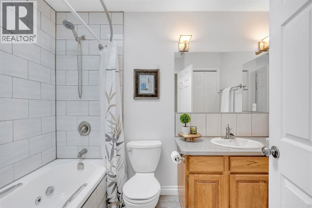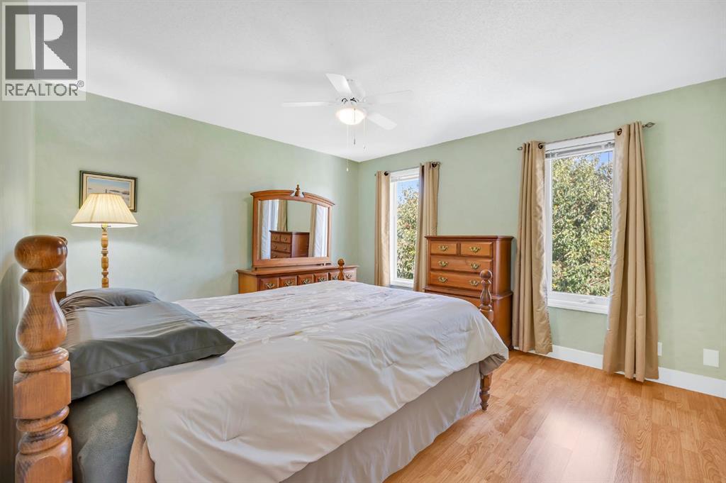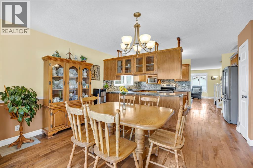 Pride of ownership resonates throughout this ORIGINAL OWNER occupied home in the COVETED community of RIDGEGATE. BACKING onto NOSE CREEK PARK, this absolutely stunning 4 level split will immediately capture your attention with its breathtaking front curb appeal. An immaculately manicured front lawn with shrubs & foliage. Canexel composite siding is bold, beautiful & ready for Alberta's changing weather conditions. The accent brick offers a sophisticated focal point to the home while the RUBBER drive pad is not only beautiful but offers a child friendly buffer for those day to day spills. This home offers over 2600 sq ft of tl developed living space with a total of 4 bedrooms above grade. Sunshine floods through the large front bay & rear windows. A substantial sized living room with beautiful hardwood floors ushering you to a LARGE bright kitchen. Ample counter space, cabinets & pantry. Updated appliances, countertops, sink, garburator & fixtures. The kitchen is open to a spacious dining area. The rear door off the dining room leads to your large low maintenance deck & fully fenced back yard. Stunning mature trees, shrubs & flowers offer a balance of beauty & privacy in this meticulously maintained OASIS. Exceptional outside storage under the deck, corner shed & garden enclosure. Back inside the house you will note a large master with 3 pc ensuite & SKYLIGHT. An exceptional sized 2nd bed, comfortable sized 3rd bed & updated 4 pc main bath with jetted tub & SKYLIGHT. The 3rd level WALK OUT is ideal for someone with a DAYHOME/HOME BASED BUSINESS & is host to the 4th bed, a large family room with stone faced gas FP, 2 pc bath & washer & dryer. The basement offers a generous sized family room, Study/Den/Wine Cellar, 3 pc bath, & Storage room. The 2 lower level rooms could be converted to beds to suit the needs of a large family while the 3rd LEVEL WALKOUT could make this home a candidate to SUITE subject to city approval & permitting. Additional storage adjacent the u tility room. The single oversized attached garage is fully insulated, drywalled & includes a plug in heater. Additional features of this home include all newer windows & doors on the top 3 levels. Triple pain windows on the main rear of the home & built in blinds on the back door. Roof , Canexel siding & furnace app 2014. Hot water tank app 2020. Upgraded attic insulation. Garburator app 2020.. Water softener. Vacu Flo & attachments. Phantom screen at front door. A/C app 2022. Underground sprinklers in the backyard. This GEM is surrounded by the tranquil beauty of NOSE CREEK PARK which is host to various community events including the Christmas Light Celebration. Nose Creek Park is home to Airdrie's largest playground, fishing ponds, pickle ball courts & various trails. Walking distance to the new public library, grocery store, gym & other amenities. Nearby schools & quick access to the highway. (id:6769)