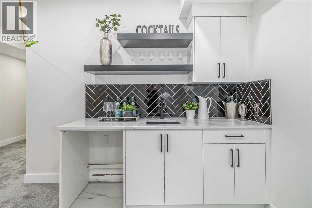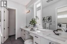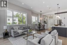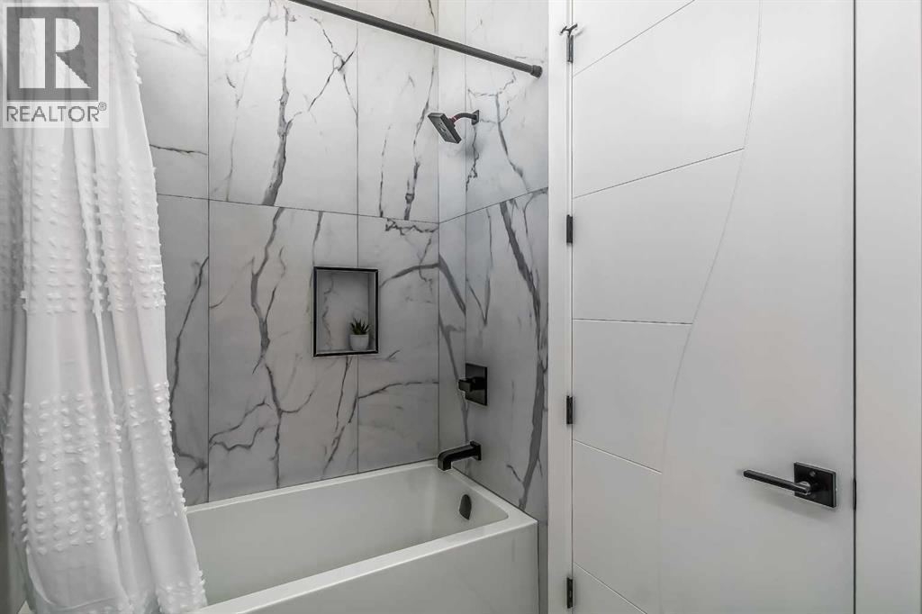 A Rare Inner-City Treasure in Shaganappi! Welcome to this stunning, nearly new custom-built home (2023) by Next New Home LTD, perfectly located on a rare 27 ft wide corner lot in one of Calgary’s most desirable inner-city communities. Offering approximately 2,850 sq ft of beautifully designed living space, this home is wider than most, creating a bright, open, and spacious feel you will notice the moment you walk in.Enjoy the best of urban living just steps from Shaganappi Golf Course, Edworthy Park, Douglas Fir Trail, Bow River pathways, LRT, schools, local shops, and cozy cafés. Everything you need is within walking distance, making daily life convenient and enjoyable.This elegant modern 2-storey home features impressive 10’ and 11’ ceilings, expansive windows, and abundant natural light throughout. The main floor welcomes you with a proper foyer, custom staircase, engineered hardwood flooring, and stylish lighting. The chef-inspired kitchen offers ample cabinetry, quartz countertops, built-in double oven and microwave, quality appliances, and a functional layout perfect for entertaining. A bright home office or extra bedroom, elegant dining area, cozy living room with fireplace, and a large mudroom with bench and closet complete the main level. Modern blinds are already installed, and the spacious 12’ x 18’ deck is ideal for relaxing and summer BBQs.Upstairs, retreat to the exceptional oversized primary suite featuring a giant walk-in closet and a spa-like ensuite with heated floors, oversized shower with bench, freestanding soaking tub, and large windows for natural light. Two additional bedrooms with 11’ ceilings and downtown views, a beautiful laundry room, and an extra-large linen closet complete the upper level.The fully finished basement offers a fourth bedroom with full ensuite and large closet, a spacious recreation room with wet bar, walk-in closets, and an additional half bath—perfect for guests, teens, or extended family. In total, this home of fers five bathrooms for maximum comfort and convenience.The heated, insulated, and drywalled double garage (20’ x 22’) easily fits a truck and includes extra driveway parking. It is EV charger-ready and designed for year-round use. This home feels much larger than its size and has been thoughtfully designed for modern living. This is a rare opportunity to own a luxurious, spacious, and upgraded inner-city home in one of Calgary’s most connected communities. Book your private showing today and experience the lifestyle this beautiful Shaganappi home has to offer. There is a post and a wire securing the Enmax power in front of the house that can be removed. (id:6769)