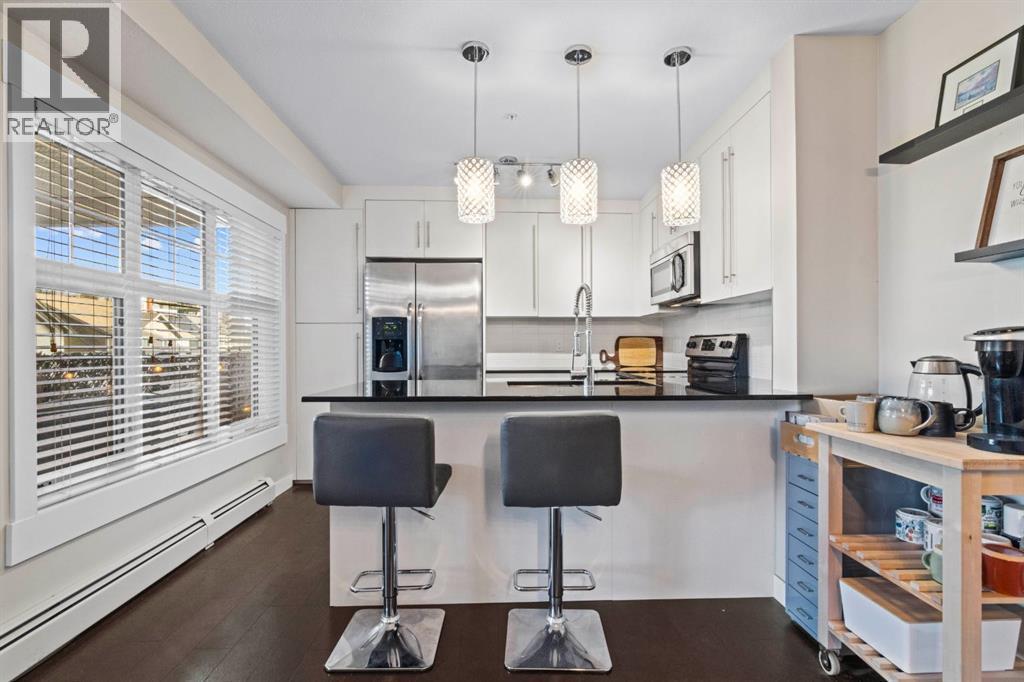 Welcome to this beautifully designed 2-bedroom, 2-bathroom condo located in the vibrant lake community of Mahogany. Perfectly positioned just steps away from Mahogany West Beach, this open-concept corner unit combines style, comfort, and convenience in one of Calgary’s most sought-after neighbourhoods. The thoughtfully designed floor plan makes the most of every square foot with no wasted space. The spacious kitchen is equipped with stainless steel appliances, abundant cabinetry, and a functional layout that flows seamlessly into the dining and living areas—perfect for both entertaining and everyday living. Large windows allow plenty of natural light to fill the home, while the private balcony extends your living space outdoors. The primary bedroom features 2 generous sized closet's and 4pc ensuite bathroom, while the second bedroom and additional full bathroom provide flexibility for family, guests, or a home office. In-suite laundry also adds extra convenience. This unit includes a titled underground parking stall, ensuring your vehicle is secure and protected year-round. Living in Mahogany means enjoying all the amenities this award-winning community has to offer: lakeside living with beaches and pathways, trendy coffee shops, great restaurants, schools, and shopping—all just minutes from your door. With quick access to major routes, commuting is simple, while still being able to enjoy the peaceful, community-oriented lifestyle Mahogany is known for.Don’t miss your chance to own this exceptional home in one of Calgary’s most desirable lake communities! (id:6769)