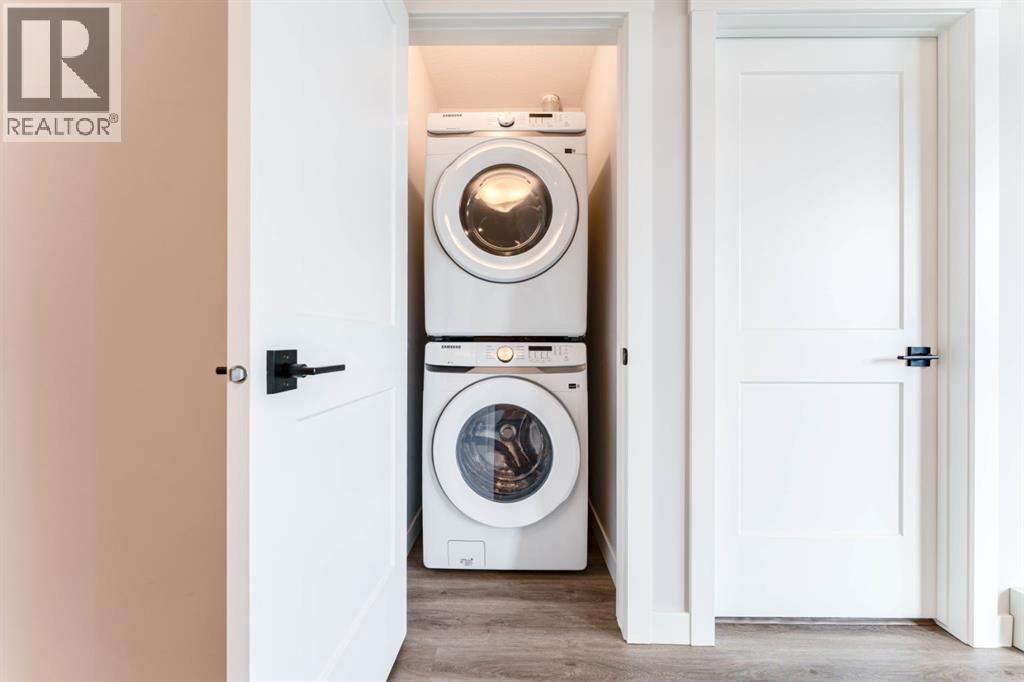 This is a gorgeous 3rd floor and nearly brand new 2 Beds 2 Baths and 2 Walk In Closets unit. Award winning Logel Homes built unit in the sought after Livingston community in the NW of Calgary. The east facing unit comes with Samsung stainless steel appliances, all quartz counters and black contrasting hardware. The generous sized rooms both have walk in closets and are well lit with good sized windows for adequate natural light. The living room leads to the big balcony, which has a BBQ gas line. The unit is in a cozy smaller condo with lots of great amenities surrounding it, like ponds, walking trails and a great community recreation center, the Hub! This is a must see unit! Listing agent has an interest. (id:6769)