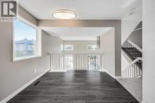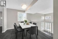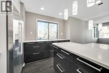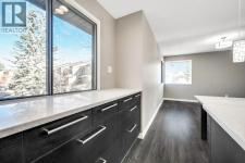 A beautifully updated end-unit townhouse in a quiet corner of the complex, backing onto open greenspace and offering exceptional privacy. Available for immediate possession. This home features a rare oversized double attached garage with extensive built-in cabinetry, a sink, and full driveway parking. Recent upgrades include new bathrooms throughout, modern engineered hardwood and LVP flooring, fresh paint, and bright kitchen cabinetry with a large island and integrated dining table, all finished with quartz countertops. A welcoming foyer leads to a spacious living room with high ceilings and large south-facing windows for excellent natural light. A few steps up is the kitchen, dining area, and a second living space with a cozy wood-burning fireplace and convenient half bath, ideal for everyday living and entertaining. Upstairs offers a spacious primary bedroom with a private ensuite featuring heated floors. A thoughtful reconfiguration created a massive second bedroom with dual closets and a cheater ensuite with separate hall access. The original third bedroom wall can be easily restored if desired. Enjoy a sunny south-facing deck and private fenced yard, perfect for pets and outdoor living. The basement level is dedicated to mechanical space and crawl-space storage, maximizing usable living areas above. This well-managed, pet-friendly complex is steps from Glamorgan Park, London Place West, and Richmond Square. Positioned directly beside the pathway and greenspace, the home offers a quiet, private setting with immediate access to long walking routes. Just 15 minutes to downtown with quick connections to Glenmore Trail and Stoney Trail. (id:6769)