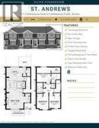 END UNIT, SIDE ENTRY TO BASEMENT. , IMMEDIATE POSSESSION, DOUBLE DETACHED GARAGE, DECK, FENCED AND LANDSCAPED, NO CONDO FEES. PICTURES ARE OF SAME MODEL, NOT SUBJECT PROPERTY. Welcome to the "St. Andrews" townhome, by Award winning, Master Builder, Douglas Homes Ltd. From the front covered porch, the entry opens onto the spacious great room with 9ft ceiling and gleaming hardwood floors throughout the main floor. The aspiring chef will appreciate the well planned "island" kitchen. From the upgraded 42 inch, soft close cabinets, to the gorgeous quartz countertops, everything is within easy reach. The sparkling stainless steel fridge, the glass top, self cleaning electric range, dishwasher, and over the range microwave/hoodfan are all just an arms length from the kitchen sink. Opposite side of the island, provides a convenient pantry, and desk with upper cabinet for all those recipe books you will collect. The spacious dining area features a large picture window looking out upon the back yard with room for the kids to play, with a rear entry door to the deck for those summer bbq's. Here also is a 2pc powder room for your guests convenience, and perhaps the kids hurried need. Upstairs includes 2 good sized secondary bedrooms, a 4pce bathroom with quartz vanity and tile floors, a convenient upstairs laundry, and a spacious primary bedroom with large upsized window and ensuite bath, with walk in shower, with glass front, tile floor and again a quartz vanity. The full basement provides rough in plumbing for a future bath, one window for future bedroom, and enough space remaining for a spacious future family room if you decide your family needs room to spread. All this in the desirable new subdivision Cobblestone Creek, with tennis courts, playgrounds, future school reserve, pathways and numerous green spaces, on the western edge of Airdrie, with wide open country side, and views to the west.Directions: (id:6769)