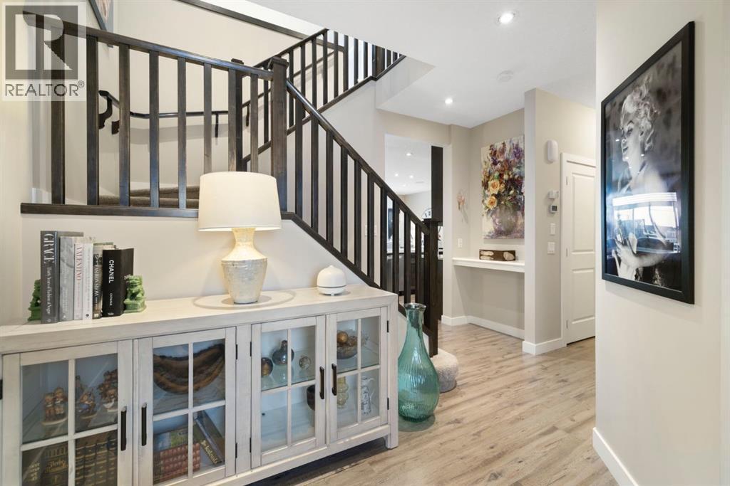 Welcome to 8 Emberside Glen! This beautifully finished two-storey FORMER SHOW HOME offers style, functionality, and an unbeatable family-friendly location backing directly onto the Holy Spirit Catholic School grounds. Stepping inside you are greeted by a spacious front entry and striking open-riser staircase that anchors the main level. The open-concept layout features durable hardwood flooring and a warm, inviting living room centered around a stone-surround gas fireplace with rich wood mantle. Some of the upgrades include a built in ceiling speaker system outfitted across the main level, upgraded tile backsplashes, and Hunter Douglas blinds adorning the windows throughout the home. The kitchen is a true standout showcasing ceiling-height cabinetry complete with display windows, quartz countertops, stainless steel appliances, tile backsplash, and a large central island. A walk-through pantry provides exceptional storage and connects conveniently to the double attached garage. Upstairs, you’ll find a bright vaulted bonus room ideal for relaxing or family movie nights. The primary suite offers a walk-in closet and a well-appointed ensuite complete with dual vanity, a corner soaker tub, and separate glass shower. Two additional bedrooms each with their own walk-in closets and a full bathroom complete the upper level. The FULLY FINISHED basement adds even more living space with a recreation room, an additional bedroom, office, full bathroom, and generous storage. The backyard is designed for both privacy and enjoyment, featuring a spacious upper deck with stairs leading down to a fully fenced yard with in-ground sprinkler system and private lower patio with hot tub. Backing directly onto the school means no rear neighbours and convenient access to playgrounds and green space. Close to parks, including the new 2 acre central park, pathways, shopping, and everyday amenities — this move-in-ready home checks all the boxes for growing families. (id:6769)