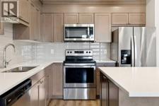 Welcome to this beautifully maintained 2-bedroom, 2-bathroom condo in the sought-after Fish Creek Exchange, ideally located in the heart of Shawnee Slopes. With nearly 800 sq. ft. of thoughtfully designed living space, this move-in-ready home blends modern comfort with one of Calgary’s most desirable natural settings.Step outside and you’re just moments from Fish Creek Park, offering endless trails, green space, and year-round recreation. Commuting is equally effortless with the Fish Creek–Lacombe LRT Station within walking distance, providing quick access downtown and beyond.Inside, the open-concept layout creates a warm and welcoming flow between the kitchen, dining, and living areas—perfect for everyday living or entertaining. The modern kitchen is fully upgraded with stainless steel appliances, quartz countertops, soft-close cabinetry, an undermount sink, and a generous island that anchors the space. The primary bedroom offers a walk-through closet and a private 3-piece ensuite, while the second bedroom and full bathroom provide flexibility for guests, a home office, or roommates.This well-managed, pet-friendly complex (cats and dogs welcome) also features titled underground parking, titled storage, in-suite full size laundry, and two indoor bike storage lockers, ideal for an active lifestyle. Unit #208 is conveniently located on the same level as the entrance and elevator, with easy access via ramp or stairs.Surrounded by the amenities of Shawnee Slopes, close to schools, shopping, transit, and nature, this home is perfectly suited for first-time buyers, downsizers, or investors seeking a low-maintenance property in a high-demand location.An exceptional opportunity to live where city convenience meets natural beauty - don’t miss it. (id:6769)