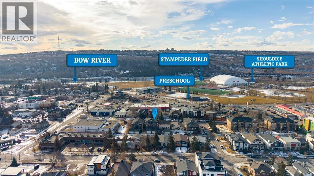 In real estate, location is everything — and Montgomery is one of those rare communities that truly delivers. Steps from the Bow River pathways and surrounded by beloved local cafés, shops, and green space, this beautifully appointed front-unit townhouse in a modern four-plex offers elevated inner-city living without compromise. With south-facing exposure and a sunny front patio, this well-maintained home is filled with natural light and offers nearly 2,200 sq ft of total developed living space across four finished levels. Every floor has been thoughtfully designed to balance style, comfort, and everyday function. The main level impresses with 9-foot ceilings and a bright open-concept layout that’s ideal for entertaining. The gourmet kitchen anchors the space with quartz countertops, sleek cabinetry, stainless steel appliances, and a central island perfect for gathering. Rich hardwood flooring carries into the inviting living room, where a gas fireplace adds warmth and character. A tucked-away 2-piece powder room completes this floor. On the second level, the primary bedroom serves as a relaxing retreat with a walk-in closet and private 4-piece ensuite. A second spacious bedroom, another full 4-piece bathroom, and convenient stackable laundry provide excellent functionality for families, guests, or roommates.The third-floor loft is a standout feature and offers exceptional versatility. Whether you envision a second primary suite, executive home office, media lounge, or creative space, this level adapts beautifully. Highlights include a large walk-in closet, a luxurious 5-piece ensuite with double vanity and soaker tub, a built-in wet bar, and access to a private balcony - the perfect place to unwind at the end of the day. Downstairs, the fully finished basement extends your living space with a generous recreation or family room, another bedroom, and a 3-piece bathroom, ideal for guests, teens, or a private workout area. Additional features include central air condi tioning, a detached single garage, and a designated visitor parking stall at the rear. Homes like this don’t come along often; modern design, flexible living spaces, and a walkable inner-city location that continues to grow in popularity. If you’ve been waiting for the right Montgomery property to call home, this one is well worth a look. (id:6769)