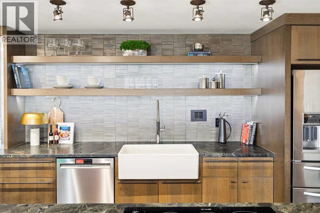 Welcome to Riverstone—one of Calgary’s most prestigious inner city residences, perfectly positioned in the heart of Mission and just steps from the Elbow River. This luxurious 1,572 sq. ft. SW corner unit has over $300,000 in high-end renovations, thoughtfully crafted by renowned interior designer Douglas Cridland. Showcasing a modern, open concept layout, the home is wrapped in floor to ceiling SW windows that bathe the living and dining areas in natural light while capturing sweeping southwest views. The custom chef’s kitchen is both functional and stunning, featuring premium stainless steel appliances, a farmhouse sink, soft-close cabinetry with dovetail construction, built-ins, a wine fridge, and a striking leather granite island that anchors the space. The spacious primary bedroom, accented by sliding barn doors, includes a beautifully designed ensuite with a walk in shower and a generous walk in closet. A large second bedroom and a well appointed main bath with a shared shower offer flexibility for guests or a home office.Additional upgrades include solid core doors, designer lighting and plumbing fixtures, pot lights, smooth ceilings, and an elegant electric fireplace. Riverstone is a true full-service building, offering 24-hour concierge, a fitness center, swimming pool, visitor parking, car wash bay, and tennis courts. This home delivers exceptional value in Calgary’s upscale condo market—combining luxury, location, and lifestyle in one of the city’s most desirable communities. (id:6769)
