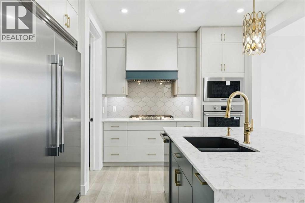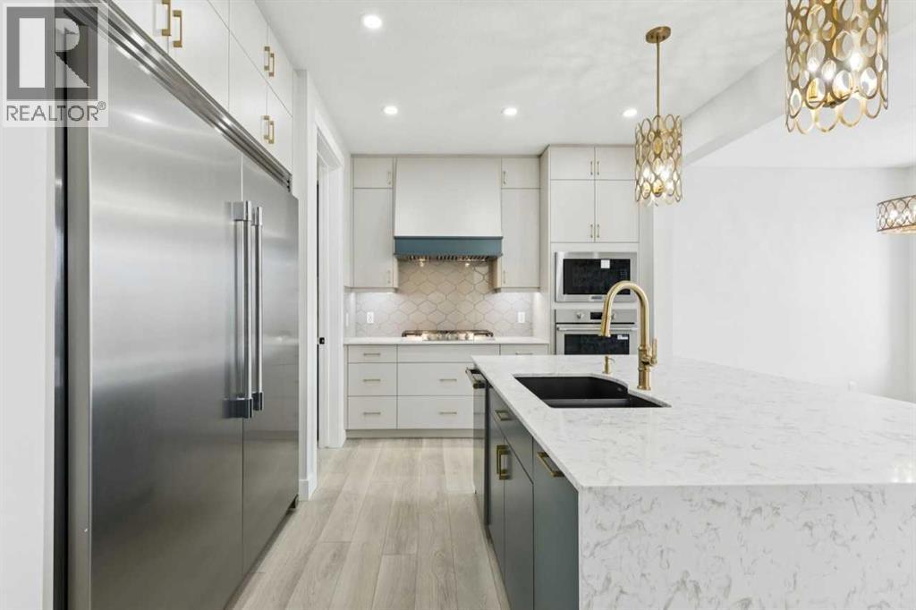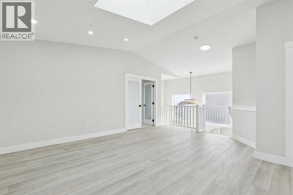 Welcome to The Emerald in Glacier Ridge, a move-in-ready quick possession by Shane Homes with thoughtful upgrades throughout. This custom build features a walkout basement, full deck, and oversized windows that bring in exceptional natural light.The main floor offers a gourmet kitchen with upgraded appliances, a separate spice kitchen, full bathroom, and a flex room ideal for a home office or guest space. The garage is roughed in for a potential future heater, adding everyday practicality.Upstairs, enjoy a vaulted bonus room with skylight, two well-sized bedrooms, and a private owner’s bedroom complete with a 5-piece ensuite and walk-in closet. Both secondary bedrooms include walk-in closets, and a dedicated laundry room completes the upper level.The walkout basement includes a separate entrance and rough-ins for potential future development, offering strong long-term flexibility for growing families.A well-designed home in a growing NW community, ready for immediate possession. Photos are representative. (id:6769)