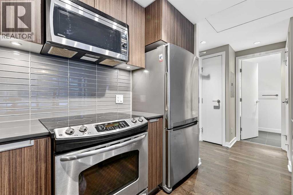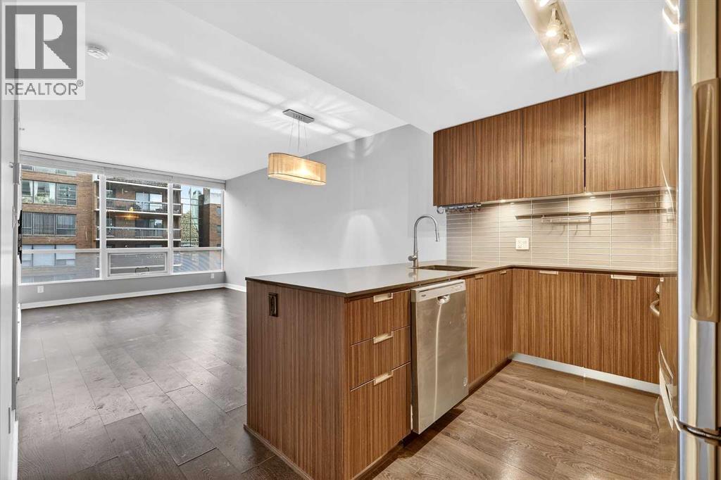 This stylish 1-bedroom condo in the highly regarded Calla building offers an exceptional urban lifestyle in the heart of downtown Calgary. Ideally located directly across from Beaulieu Gardens and the historic Lougheed House, the building provides a peaceful, park-adjacent setting while remaining just steps from Calgary’s downtown core, Stampede Grounds, public transit, dining, shopping, and nightlife. The Calla is a well-managed, concrete-constructed building known for its quality and quiet living environment. Residents enjoy an elegant lobby and an impressive selection of amenities, including a fully equipped fitness centre, yoga studio, concierge service, guest suite, and secure bike storage. Inside, the condo features 9-foot ceilings, central air conditioning, and floor-to-ceiling south-facing windows that flood the space with natural light and showcase beautiful city views, including front-row views of the Calgary Stampede fireworks. The modern kitchen is thoughtfully designed with full-height cabinetry, quartz countertops, stainless steel appliances, and a peninsula with breakfast bar, offering both functionality and style. The kitchen flows seamlessly into the dining area and oversized living room, creating an inviting space for everyday living and entertaining. The living room opens onto a large private balcony, ideal for summer barbecues, outdoor dining, or relaxing while taking in the urban skyline. The spacious bedroom continues the bright, open feel with large windows and dual closets providing ample storage. A well-appointed 4-piece bathroom features contemporary finishes and low-flush plumbing. Additional conveniences include in-suite laundry, a titled underground parking stall, and an assigned storage locker. This property presents an outstanding opportunity for low-maintenance, upscale downtown living in one of Calgary’s most desirable locations. (id:6769)