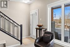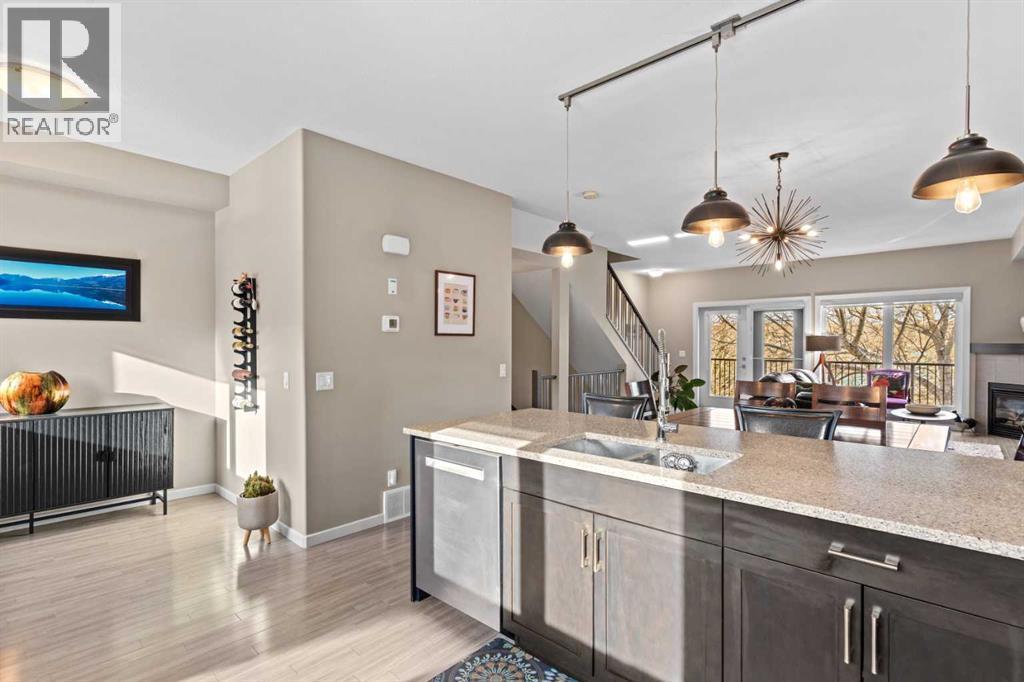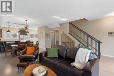 This upscale rare 3 BEDROOM townhouse adjacent to the Valley Ridge golf course and within walking distance to the Bow River, this exquisite gem feels more like life in the country than that found in the bustling city of Calgary. This property shows 10/10 and current owners have described it as PRIVATE EACEFUL and QUIET. This welcoming townhouse greets you with a cozy basement, 2-piece bath and direct access to the double garage. Tailored for an active adult lifestyle ESTATES OF VALLEY RIDGE is +18. In addition to 9' ceilings and GLEAMING HARDWOOD throughout the MAIN FLOOR, an OPEN CONCEPT layout connects the living - dining room and kitchen. The kitchen is a GOURMET'S DREAM with tan quartz countertops, abundant cabinets, double sink, high-end STAINLESS-STEEL appliances with gas stove. The spacious dining area can easily accommodate a number of guests. The corner GAS FIREPLACE in the living room adds warmth and charm to the space. Just off the living room is a PRIVATE BALCONY, adding an outdoor living space of over 200 square feet, complete with BBQ gas line. Enjoy dining outdoors or just enjoy the serene GOLF COURSE and green space views. A 2-piece bathroom completes this floor. The UPPER LEVEL as a LARGE PRIMARY BEDROOM and sizeable WALK -IN CLOSET. It also includes 2 additional bedrooms for family and guests. Conveniently located on this level is the LAUNDERY/STORAGE ROOM with front loading washer and dryer, shelving and ample storage space. On the LOWER LEVEL a private COVERED PATIO overlooks the club house with easy access to the First Tee or walking path. The main entrance into the property is on this level, as well as access to the spacious DOUBLE CAR ATTACHED GARAGE. There is also space for 2 vehicles on the parking pad, as well there is visitor parking adjacent. A large versatile RECREATION/FLEX ROOM is just off the entrance and has been used as an exercise and TV room. There is a 2-piece bathroom and utility room on this floor. This home has been LOVINGLY C ARED for and has been enjoyed by these owners. The LOCATION is one of the best in the city! Easy access to Highway 1 (2min) and approximate travel time Canmore (45min); city center (25min); bus transit (3min); Tuscany LRT (11 min); Stoney Trail (3 min); YYC airport (30 min). Valley Ridge is a STRIKINGLY BEAUTIFUL COMMINITTY with over 50% GREEN SPACE, wildlife and many outdoor activities to enjoy. Please contact your REALTOR and arrange a viewing of this gorgeous townhouse. " Seller are open to selling all the furniture if needed" . It also comes with a new AC & Hot water tank. (id:6769)