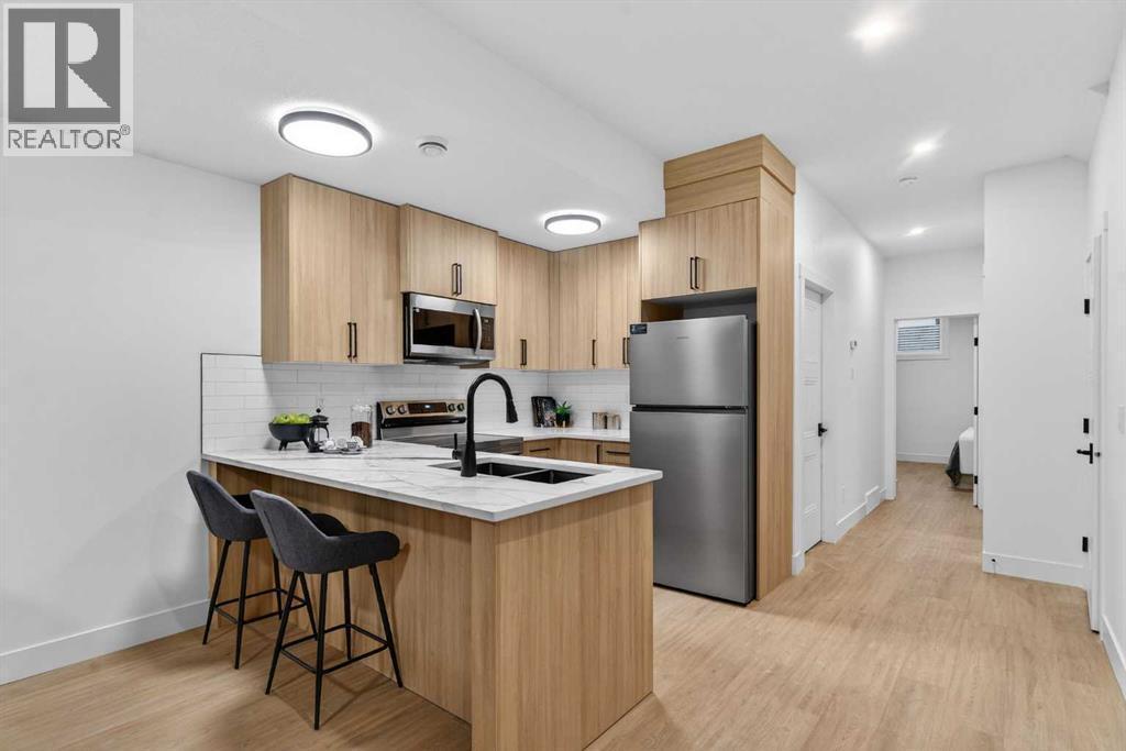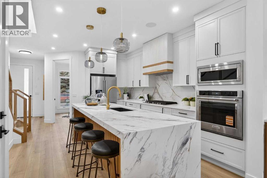 Welcome to the heart of Capitol Hill, one of Calgary’s most established and centrally located inner city neighbourhoods. This newly built semi detached home offers approximately 2,500 sq ft of well planned living space, including a legal basement suite, designed to balance modern style with everyday functionality. The main level features a thoughtful layout with a dedicated front office, ideal for working from home, while large windows throughout provide excellent natural light. The kitchen is both practical and refined, showcasing KitchenAid appliances, custom cabinetry, quartz countertops, and a clean full slab backsplash that delivers a seamless and modern finish. The kitchen and dining areas are designed for efficiency and comfort, flowing naturally into the living room for relaxed daily living and entertaining. Upstairs, the primary suite offers a private retreat with a spacious walk in closet and a well appointed ensuite with dual vanities and contemporary finishes. Two additional bedrooms, a full bath, bonus area and a conveniently located laundry room complete the upper level, providing a layout that supports family living with ease. The legal one bedroom spacious basement suite is fully self contained with a private entrance, full kitchen, laundry space, and bathroom, making it an excellent option for rental income or extended family. Thoughtful separation between living spaces ensures comfort and privacy throughout the home. Additional features include engineered hardwood flooring on the main and upper levels, durable LVP flooring in the basement, smart toilets, and a double detached garage offering secure parking and storage. The exterior features a clean stucco finish with modern detailing for lasting curb appeal. Capitol Hill is known for its mature streets, strong sense of community, and unbeatable access to Confederation Park, SAIT, the University of Calgary, schools, transit, and downtown. A home that delivers quality construction, flexible living, a nd long term value in a highly desirable inner city location. Move in ready. (id:6769)