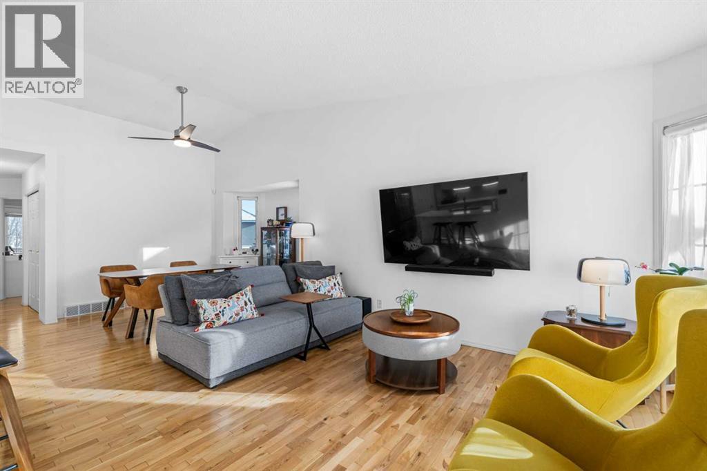 A rare opportunity to own in this highly sought-after complex in the community of Harvest Hills. This immaculate bungalow villa is ideally suited for empty nesters and offers an attached single garage with a paved driveway providing additional parking. This property is not a condominium. Affordable monthly HOA fees of $231 include snow removal, landscaping and lawn care, common area maintenance, common insurance, and professional management. Located in a quiet and desirable 55+ age-restricted community where homes are seldom available, this residence demonstrates exceptional pride of ownership. Numerous recent upgrades include brand-new roof shingles (2025), brand-new eavestroughs (2025), a water pressure monitor (2025), comprehensive Poly B pipe replacement throughout the property (2022), a reverse osmosis system (2022), fresh paint throughout (2022), quartz countertops throughout (2022), an upgraded 800 CFM hood fan (2022), a new kitchen skylight (2024), and upgraded kitchen lighting (2026). Situated on a peaceful cul-de-sac, the home features a bright and open-concept main floor with vaulted ceilings in the living room, dining area, and kitchen. The recently renovated gourmet kitchen is beautifully appointed with quartz countertops, a glass subway tile backsplash, under-cabinet lighting, a powerful hood fan, and a generous pantry—ideal for both daily living and entertaining. Natural oak hardwood flooring and abundant natural light enhance the main level throughout. The main floor offers 944 sq. ft. of thoughtfully designed living space, including two bedrooms and a 4-piece main bathroom. The spacious primary suite features a walkthrough closet, while the generous second bedroom includes a large window and an exterior French door leading to a full-width deck overlooking the backyard and adjacent green space. The fully developed basement provides a large family/recreation room with a cozy free-standing fireplace, a spacious bedroom, a 3-piece bathroom, ample storag e, and built-in shelving in the laundry/utility area. The recreation room can easily be reconfigured to accommodate a fourth bedroom, if desired. Enjoy quiet summer evenings on the private deck, take in beautiful sunsets, and even admire the Northern Lights from the comfort of your home. This exceptional property offers a serene setting with easy access to public transit and convenient routes to Country Hills Boulevard, Deerfoot Trail, and Stoney Trail. Located within minutes to T&T Supermarket, Tim Hortons, McDonald’s, Superstore, Sobeys, and much more! Be sure to view the Virtual Tour for a complete experience. Don’t miss this opportunity to own this Beautiful Home! (id:6769)