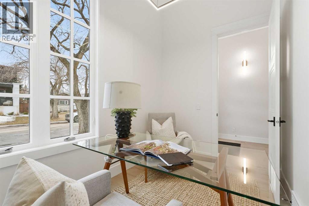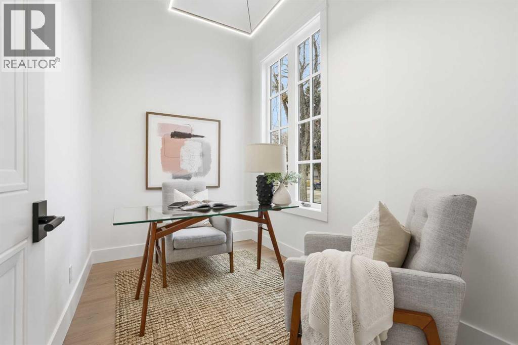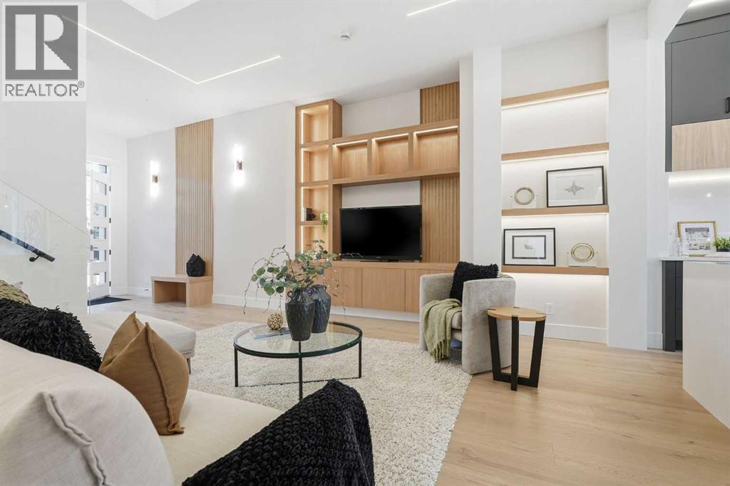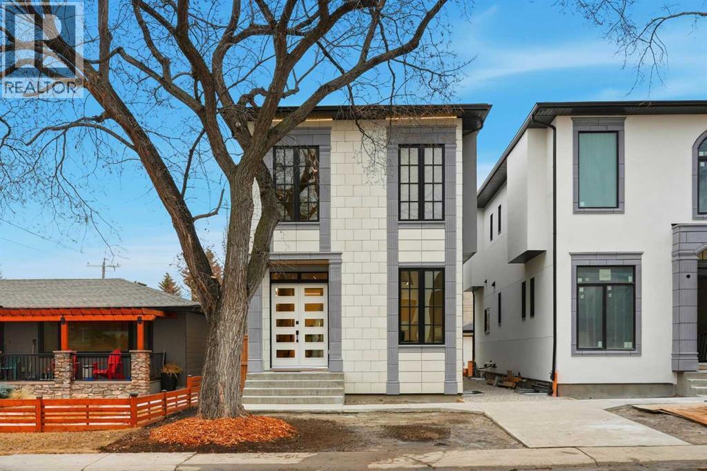OPEN HOUSE ON SATURDAY, FEBRUARY 21 FROM 11-1 PM & SUNDAY, FEBRUARY 22 FROM 1-4 PM!!! Stunning new home with full Smart Home capability, built by Libra Homes situated on a 27.6’x120’ lot in the heart of North Glenmore Park, offering 3+1 bedrooms & nearly 3000 sq ft of luxurious living space. The open & airy main level presents wide plank hardwood floors, lofty ceilings & stylish light fixtures, showcasing a spacious living room with built-ins that seamlessly transitions into the unique dual style kitchen that’s perfect for the entertainer & tastefully finished with quartz counter tops, island/eating bar & the convenience of a built-in oven, induction cooktop stove plus a gas stove with pot filler, 2 rangehoods, full sized fridge & a second smaller built-in paneled fridge with 2 drawers, making prep work & cooking for large gatherings effortless. A bright dining area provides ample space to host family & friends. A private office is located just off the foyer, perfect for a home office setup & a 2 piece powder room completes the main level. Ascend the open riser staircase to the second level that hosts 3 bedrooms, a 5 piece main bath & a well-designed laundry room with sink & storage. The primary retreat boasts a to-die-for walk-in closet & opulent 5 piece ensuite with dual sinks, relaxing freestanding soaker tub & oversized glass enclosed shower. Basement development lends itself to game or movie night, featuring a family/media room with built-in entertainment centre, cozy fireplace, built-in speakers & wet bar with plenty of room for a second seating area. A fourth bedroom & 3 piece bath with rejuvenating steam shower are the finishing touches to the basement. Other notable features, roughed-in A/C, LED lighting throughout, large back deck & double detached garage with enough space to park a larger vehicle. The location is incredibly convenient, close to Glenmore Athletic Park, Lakeview & Earl Grey Golf Clubs, schools, shopping, public transit & effortless access to Glenmore & Crowchild Trails. (id:6769)