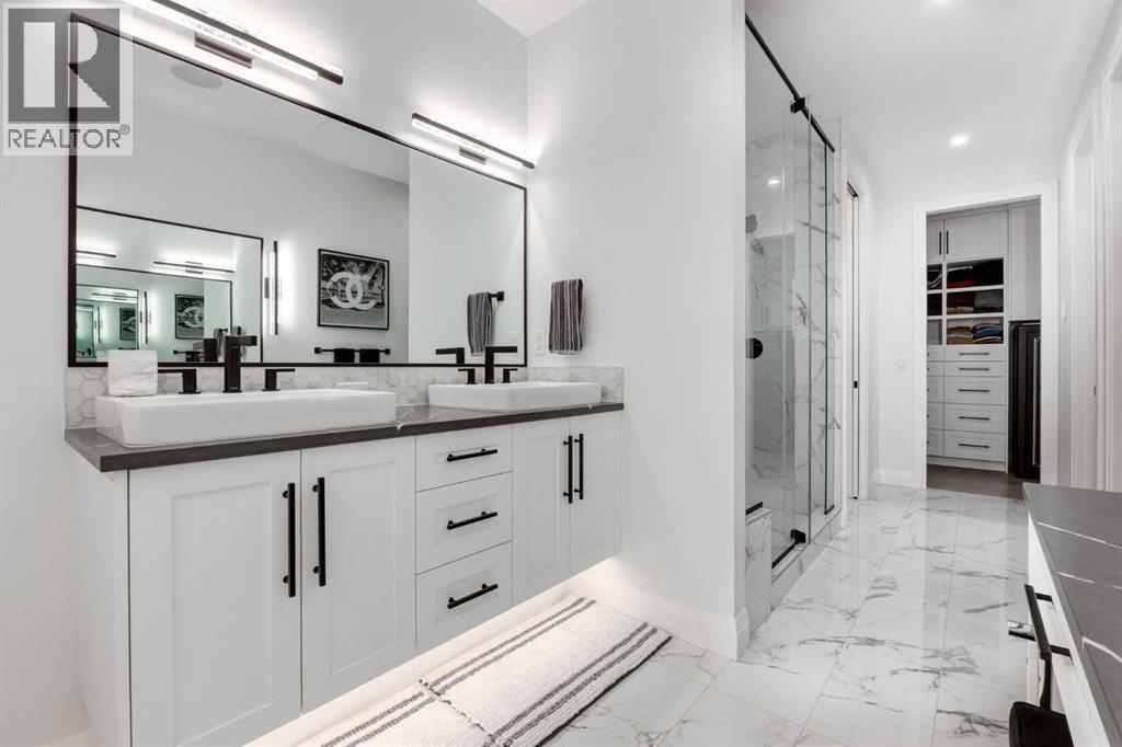 OPEN HOUSE SUNDAY, MARCH 15TH, FROM 2PM TO 4PM. Located in the heart of Springbank Hill, this beautifully appointed home backs onto a picturesque ravine and boasts views of the rolling hills and city to the South. Designed for low-maintenance living, this home features Hardie Board siding, aluminum composite fencing, an artificial turf lawn with a backyard putting green and artificial shrubs, ideal for snowbirds or busy families. Every inch of the nearly 4,500SF of living space was meticulously designed and decorated with intention, creating a true sanctuary that feels like a work of art. Soaring ceilings, white oak engineered hardwood floors, hardwood coffered ceiling details and the most spectacular designer lighting are only a few features that make this home so spectacular. The ‘chef’s kitchen’ features top-of-the-line Thermadore appliances including a multi-function built-in coffee and espresso machine and a dual zone beverage cooler. Custom features such as internal cabinet drawers, spice pullouts and a fabulous walk-through butler’s pantry leave nothing to be desired. A vaulted ceiling in the great room boasts a stunning floor-to-ceiling fireplace and a ‘showpiece’ staircase and masterfully displays the amazing Southerly view. A spacious dining area, a private home office and a mudroom outfitted with lots of custom storage combine beautiful design with perfect functionality. The upper level features a bright and open bonus room, two additional bedrooms, each with a walk-in closet and an ensuite bathroom and a spa-like primary suite with his-and-hers closets, one of which is connected to the incredible laundry room. The fully finished lower level boasts a fourth bedroom and bathroom, a ‘professional’ home gym, a games room and a media room with a fireplace and a wet bar. The heated triple attached garage, outfitted with epoxy flooring, custom storage, a work bench and cabinets, is every hobbyist’s dream. A six-person hot tub sits on an aggregate covered rear patio, an upper balcony with glass railing overlooks the views, a twelve-burner plus griddle BBQ station and a plumbed in natural gas fire table are all located in places to relax outside and admire the breathtaking view. Heated floors in all the bathrooms, Hunter Douglas programmable motorized solar shades and a high-end Elan smart home system that encompasses everything from security to lights to music and televisions, set this home apart from any other. This home offers something special for every stage in life. (id:6769)
