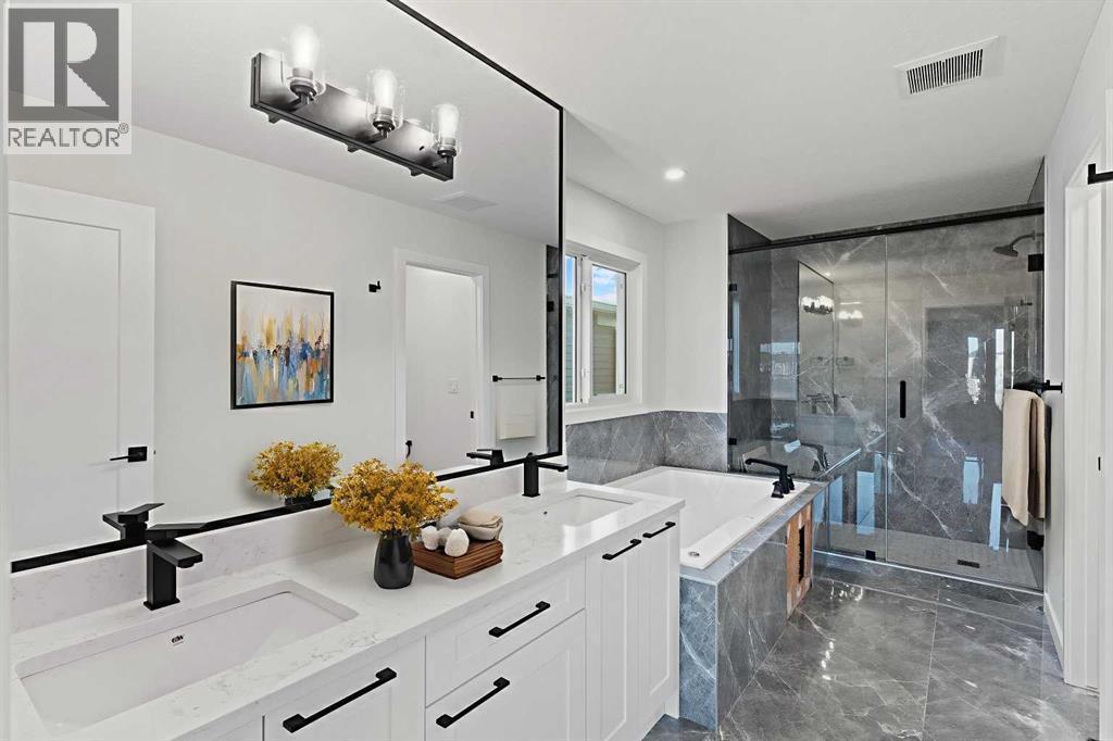 Welcome to your ideal family retreat! This thoughtfully designed detached home features 5 bedrooms and 4 bathrooms, offering the perfect balance of modern comfort and classic appeal in the desirable Air Ranch community. The main floor showcases an open-concept kitchen with stainless steel appliances, quartz countertops, a large island, walk-through pantry, and abundant cabinetry. Spacious living and dining areas create a seamless flow, ideal for entertaining or everyday family living. Also on the main level is a generous office that can easily serve as a fifth bedroom, along with a stylish 4-piece bathroom and a functional mudroom.Upstairs, you’ll find four well-appointed bedrooms and a large flex space, all filled with natural light. The primary suite offers a spa-inspired ensuite and walk-in closet, while three additional updated bathrooms with modern fixtures provide comfort and convenience for the whole family. Located close to schools and recreational amenities, this home delivers both tranquility and everyday convenience. Don’t miss your chance to make this exceptional property your own! (id:6769)