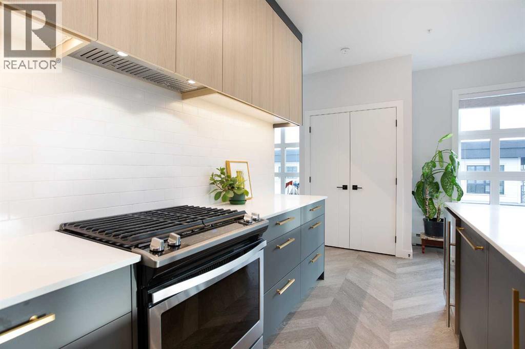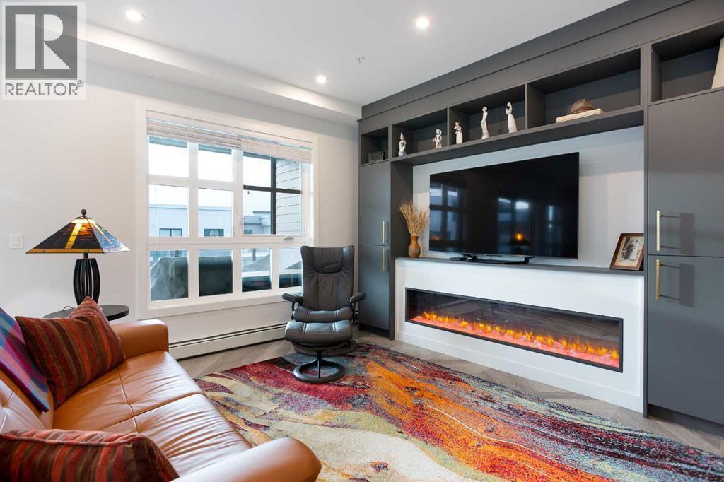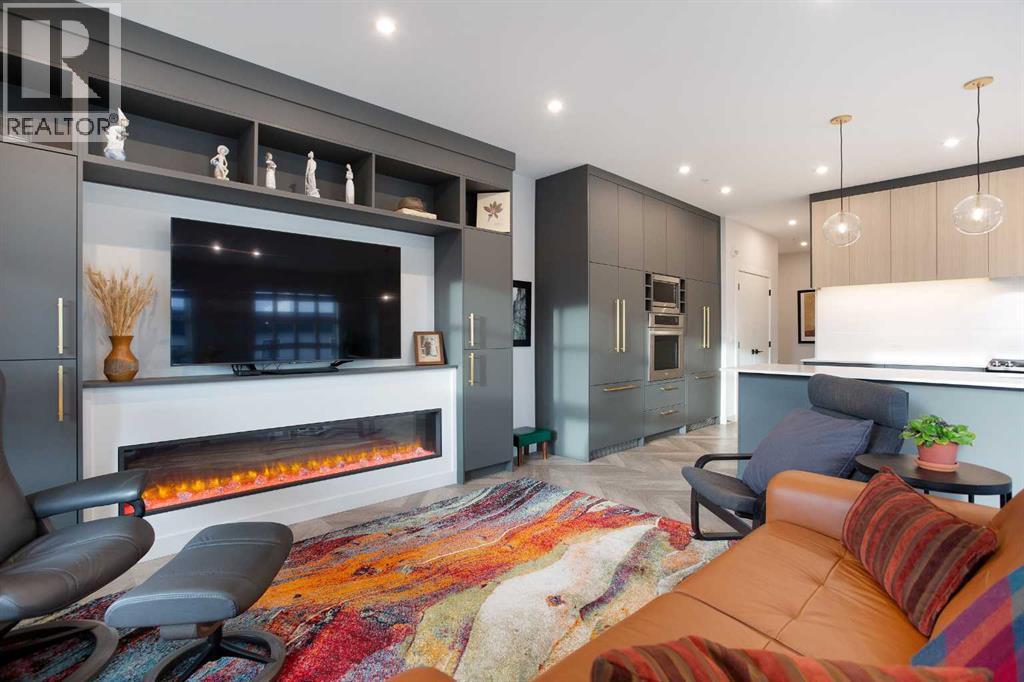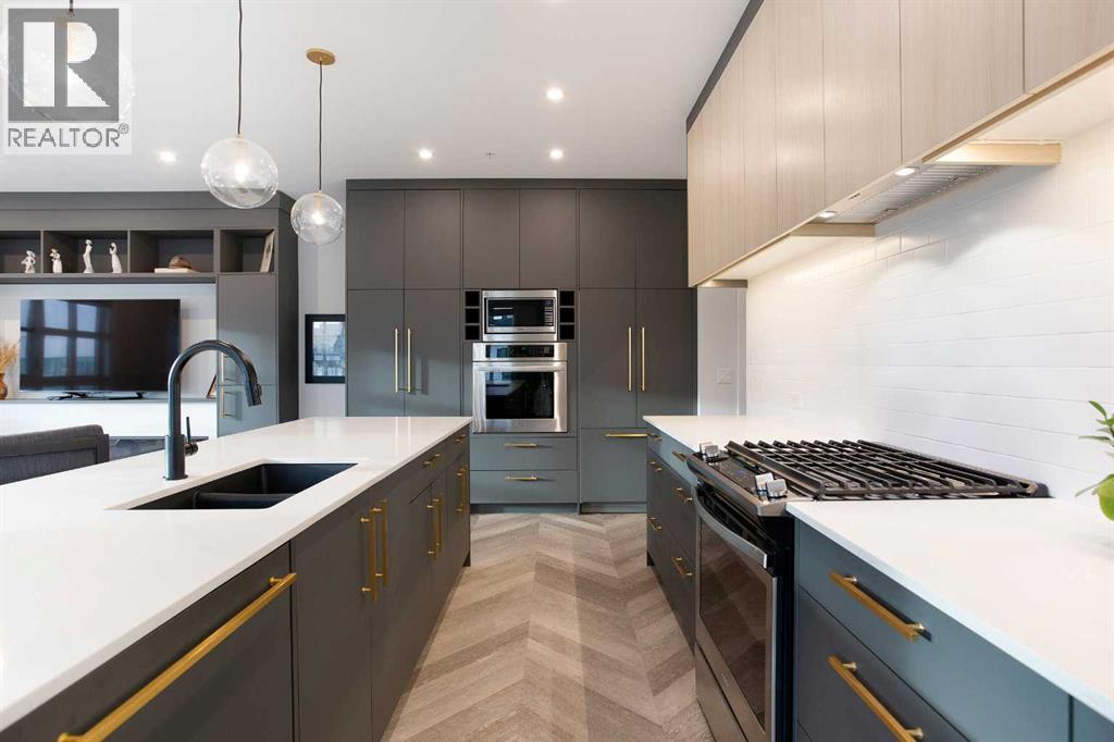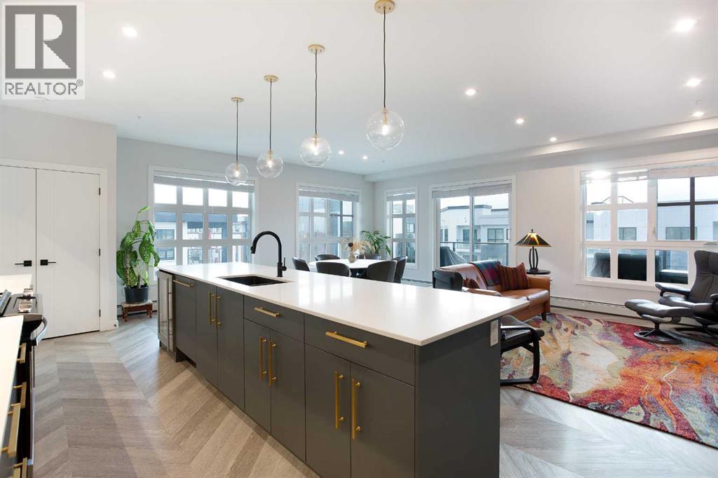 Welcome to Esquire in the University District! This CORNER UNIT, TOP-FLOOR PENTHOUSE is designed for luxury, style and comfort. The gourmet kitchen features a 12-foot central island, TWO built-in refrigerators, a gas range, a built-in oven, a built-in microwave and a bar fridge making entertaining and preparing meals a delight! The spacious living room features gorgeous herringbone flooring and a stylish electric fireplace with built-ins. TWO balconies provide beautiful views - one facing west with MOUNTAIN VIEWS! and the other facing east overlooking the courtyard and park. The primary bedroom has an OVERSIZED walk-in closet with custom built-ins and a luxurious 4-pc ensuite with a floor-to-ceiling tiled walk-in shower and dual sinks. The 2nd bedroom includes a murphy bed and has space for an office / study area. A 2nd 4-pc bathroom is in the hallway for added convenience. A laundry room, a spacious front closet and storage room and THREE underground STORAGE lockers ensure plenty of space for all your needs. TWO underground TITLED parking stalls are included. Loaded with amenities, this building offers a gym, a pet wash station, bike storage and tuning areas and a workshop. Conveniently located close to the University of Calgary, the Alberta’s Children’s Hospital, an urban dog park, Central Commons park, multiple shops, restaurants and grocery stores as well Market Mall, a daycare and the Cineplex VIP theatre. Accessing the rest of the city and downtown is a breeze with nearby transit routes and major road networks. This luxurious penthouse is waiting for you to call home! Call to book your private showing today. (id:6769)