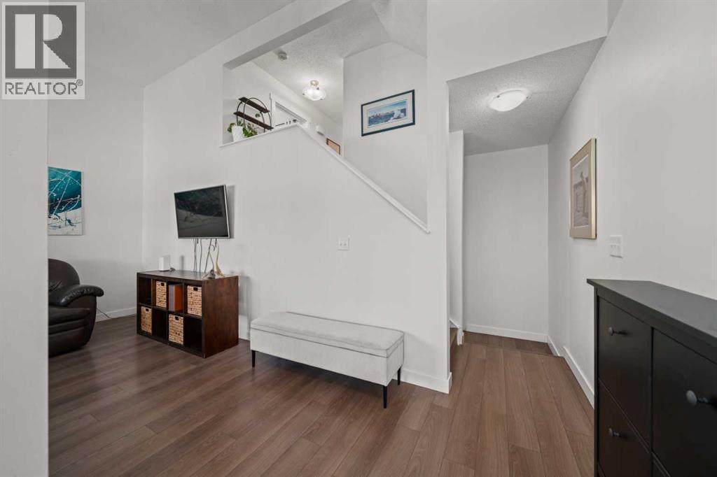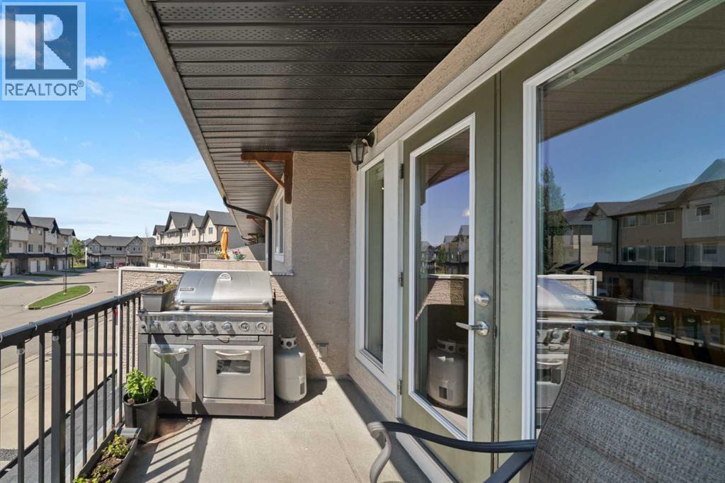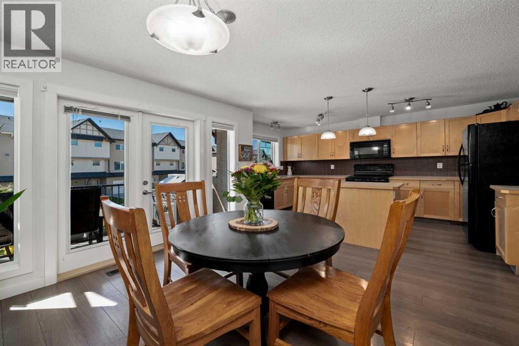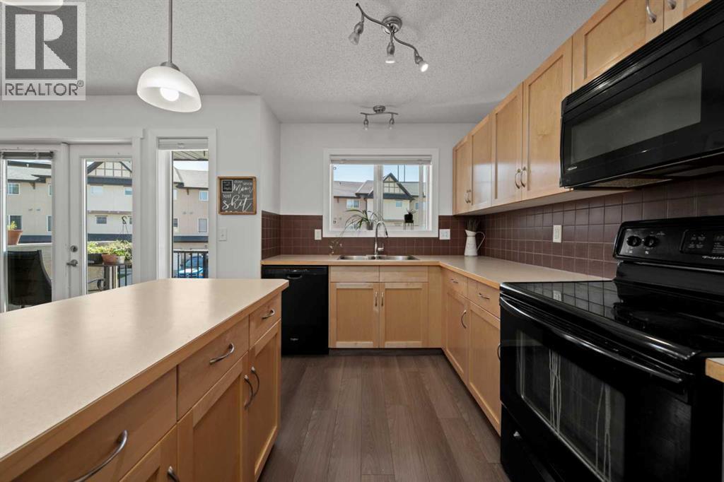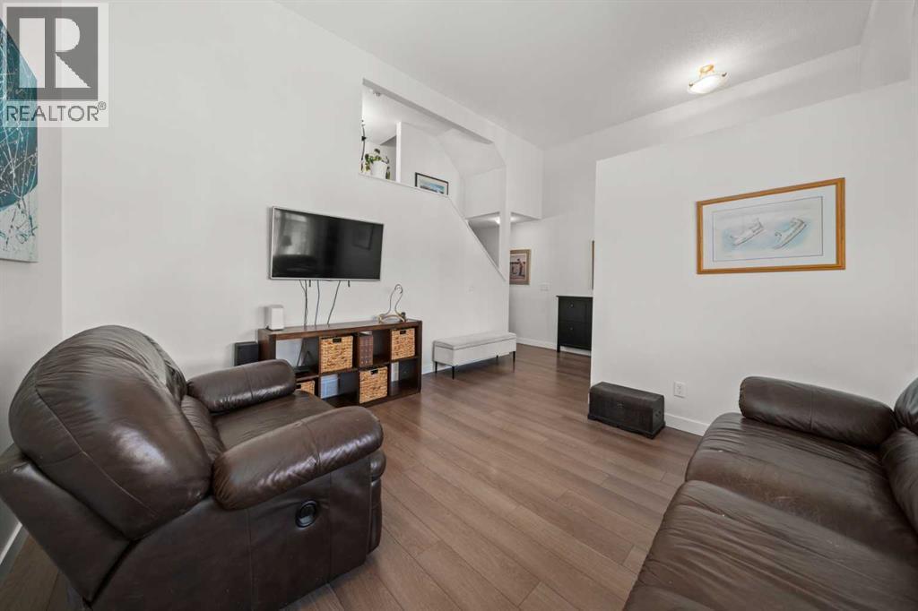 Welcome to this fabulous end-unit townhome offering 3 bedrooms, 2.5 bathrooms, and an attached double garage in the popular community of Cimarron. Beautifully maintained and truly move-in ready, this home features vinyl plank flooring throughout and an ideal layout for everyday living. The main level welcomes you with soaring ceilings, stylish flooring, and a bright, inviting living room—perfect for relaxing at the end of the day. Upstairs, you’ll find a well-designed kitchen with a central island and ample counter space, a spacious dining area, and access to a south-facing balcony—ideal for BBQs and enjoying the sunshine. This level is completed by a convenient 2-piece powder room and laundry with washer and dryer.The upper level offers three generous bedrooms, including a primary suite with a 4-piece ensuite, plus an additional 4-piece main bathroom to accommodate family and guests.On the lower level, enjoy easy access to the attached double garage, along with a partially finished family room offering extra flexible living space.This home faces onto the park within the complex, with a playground just steps away. Ideally located within walking distance to shopping, walking paths, and the Sheep River, this is an excellent opportunity to own a stylish, low-maintenance home in a desirable complex. View the 3D tour! (id:6769)