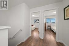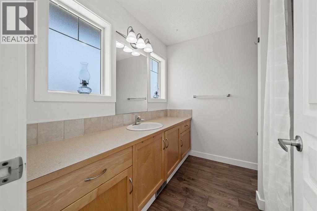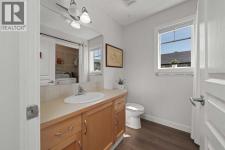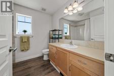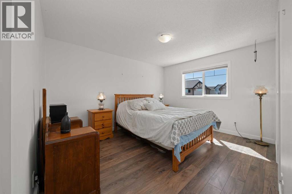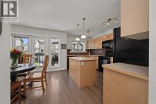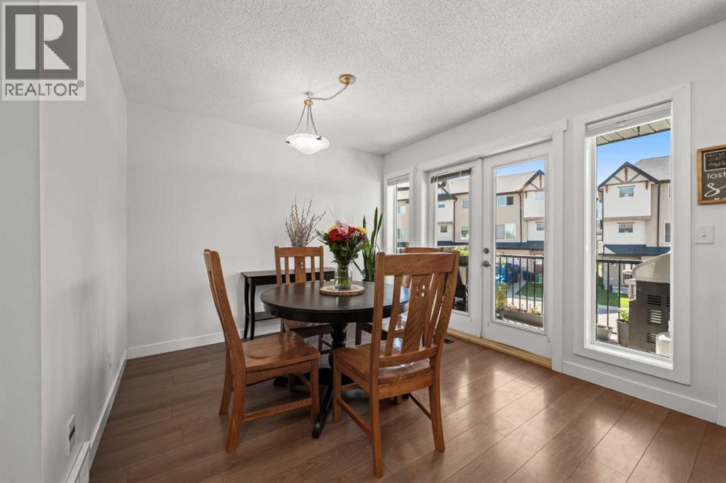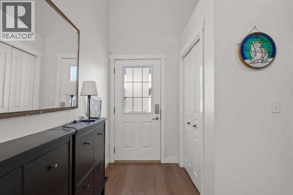 Welcome to this fabulous end-unit townhome offering 3 bedrooms, 2.5 bathrooms, and an attached double garage in the popular community of Cimarron. Beautifully maintained and truly move-in ready, this home features vinyl plank flooring throughout and an ideal layout for everyday living. The main level welcomes you with soaring ceilings, stylish flooring, and a bright, inviting living room—perfect for relaxing at the end of the day. Upstairs, you’ll find a well-designed kitchen with a central island and ample counter space, a spacious dining area, and access to a south-facing balcony—ideal for BBQs and enjoying the sunshine. This level is completed by a convenient 2-piece powder room and laundry with washer and dryer.The upper level offers three generous bedrooms, including a primary suite with a 4-piece ensuite, plus an additional 4-piece main bathroom to accommodate family and guests.On the lower level, enjoy easy access to the attached double garage, along with a partially finished family room offering extra flexible living space.This home faces onto the park within the complex, with a playground just steps away. Ideally located within walking distance to shopping, walking paths, and the Sheep River, this is an excellent opportunity to own a stylish, low-maintenance home in a desirable complex. View the 3D tour! (id:6769)