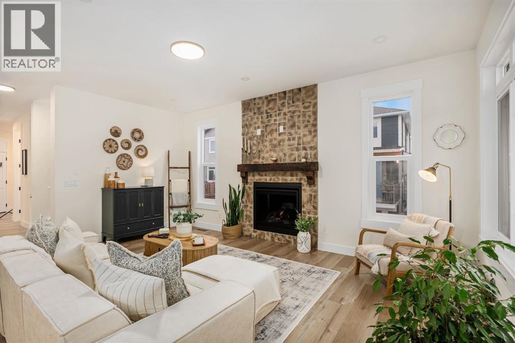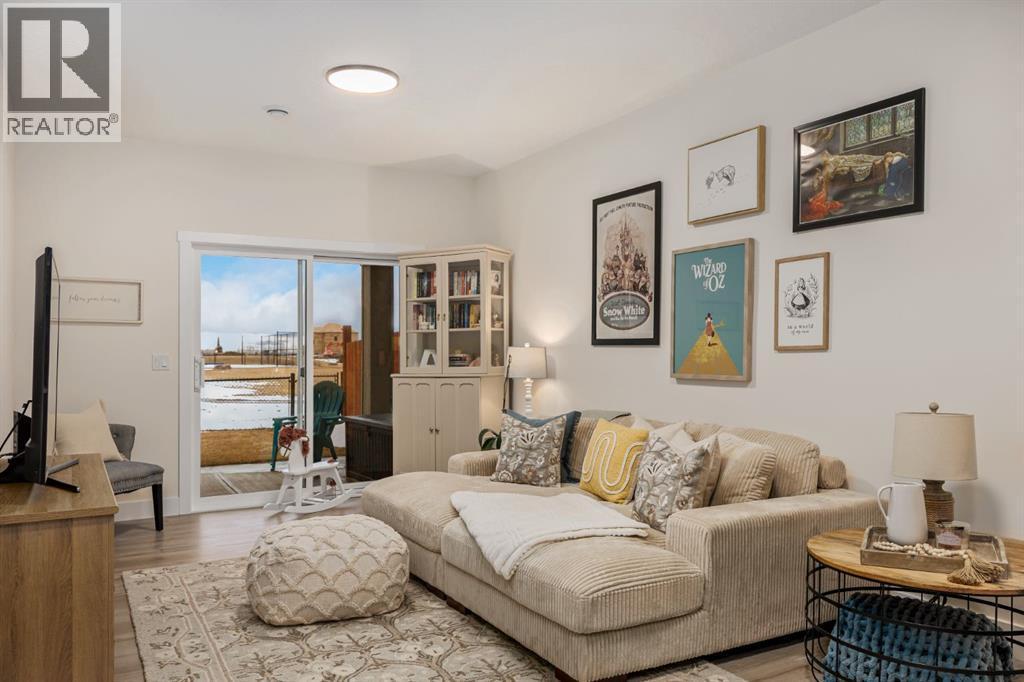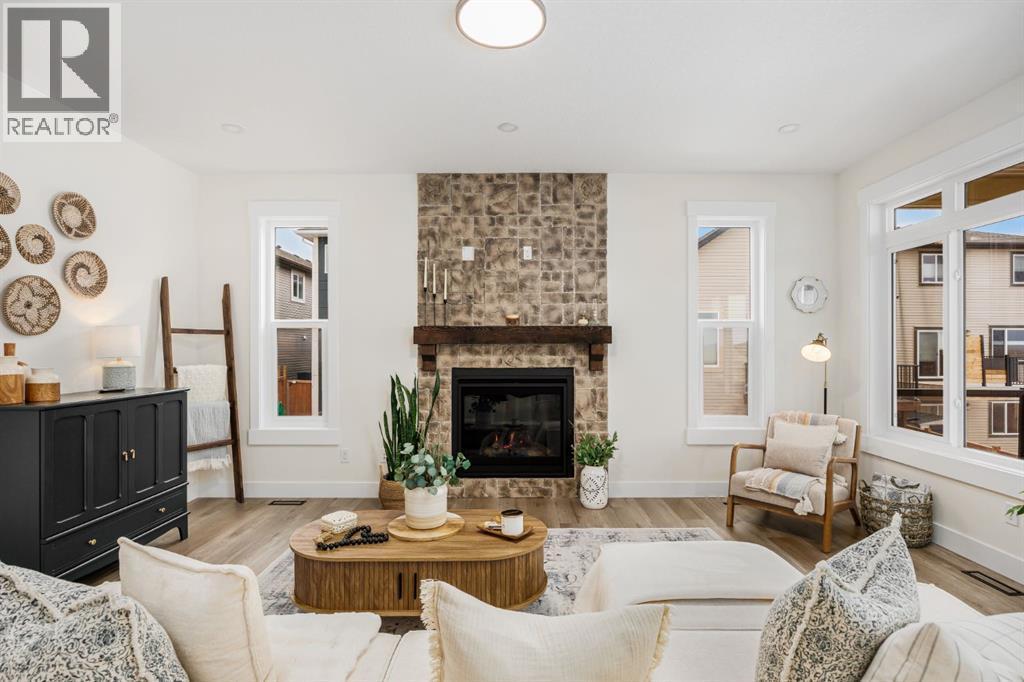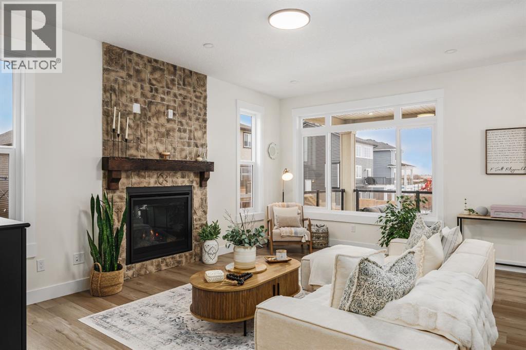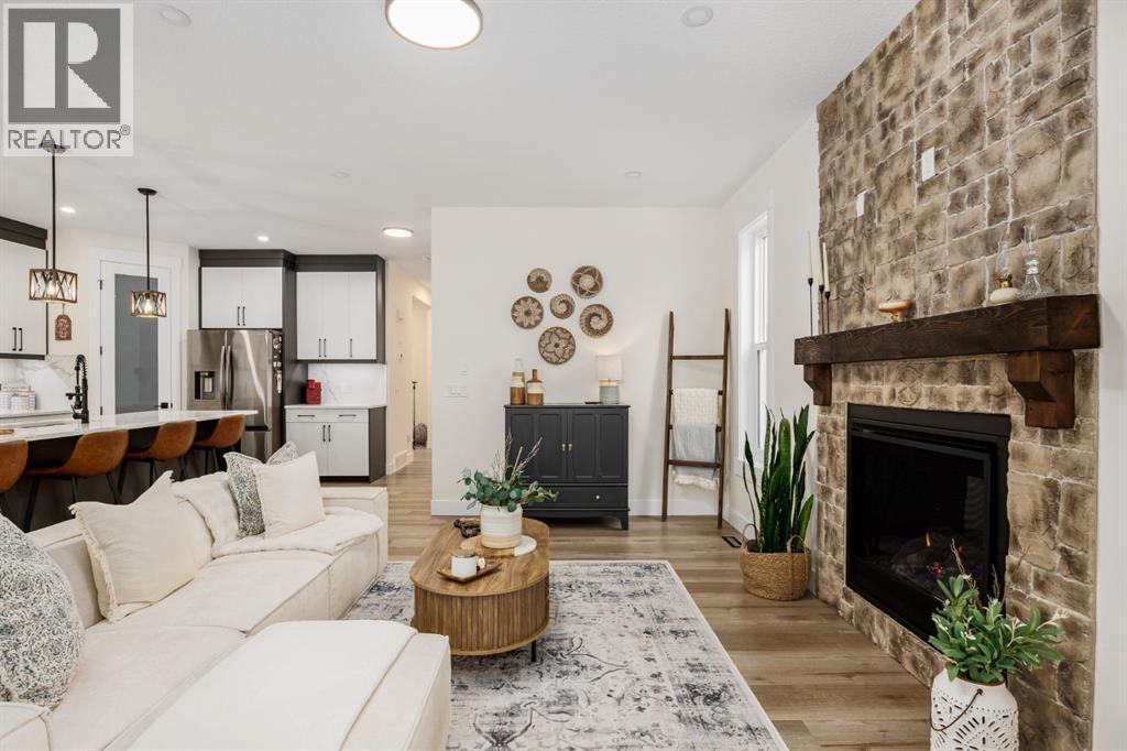Discover refined living in this impeccably crafted 2024 custom-built two-storey walkout by Shayman Homes, located in the sought-after lake community of Lakewood in Strathmore. Backing onto a lush green space and walking path with no neighbours behind, this east-facing home offers nearly 3,000 sq.ft. of beautifully designed living space with luxury finishes throughout.The striking exterior with stone accents and extended driveway welcomes you into a bright foyer filled with natural light from oversized windows. The main floor features 9’ ceilings and luxury laminate flooring, flowing through a thoughtfully designed layout. A private main-floor office with an 8’ doorway provides the perfect workspace or flex room.The chef’s kitchen is the heart of the home, showcasing an expansive quartz island, soft-close white cabinetry with black hardware, undermount sink, and premium stainless steel appliance package including a gas range, chimney-style hood fan, built-in oversized microwave, dishwasher, and refrigerator with water hookup. A spacious pantry with built-in shelving and automatic lighting adds everyday convenience.The dining and living areas are flooded with natural light and anchored by a stunning floor-to-ceiling stone gas fireplace with custom mantel. Step outside to the covered upper deck spanning the width of the home, complete with recessed lighting, custom glass railings, and a gas line rough-in—ideal for entertaining while overlooking the landscaped yard and park.Upstairs features a vaulted ceiling opening into a massive bonus room, upper laundry with tile flooring and quartz counters, and three generously sized bedrooms. The primary retreat offers a spa-inspired ensuite with dual quartz vanity, 5’ soaker tub, floor-to-ceiling tiled shower, a private toilet room, and a walk-in closet with custom built-ins. A stylish 4-piece bathroom completes the level.The fully developed walkout basement extends the living space with 9’ ceilings, luxury laminate floorin g, a spacious family room, and a custom 10’ wet bar with quartz counters, tile backsplash, and built-in cabinetry. Two large bedrooms, a 4-piece bathroom, mechanical room, and under-stair storage complete the lower level.Outside, enjoy a covered concrete patio, fully landscaped yard, and unobstructed views of the greenspace and playground. Located minutes from schools, amenities, recreation, and golf, with Calgary just 30 minutes away, Lakewood offers a lifestyle unlike any other. Dont miss your opportunity to own this stunning family home. Book your private showing today. (id:6769)