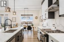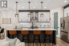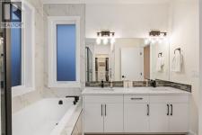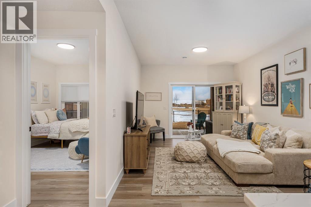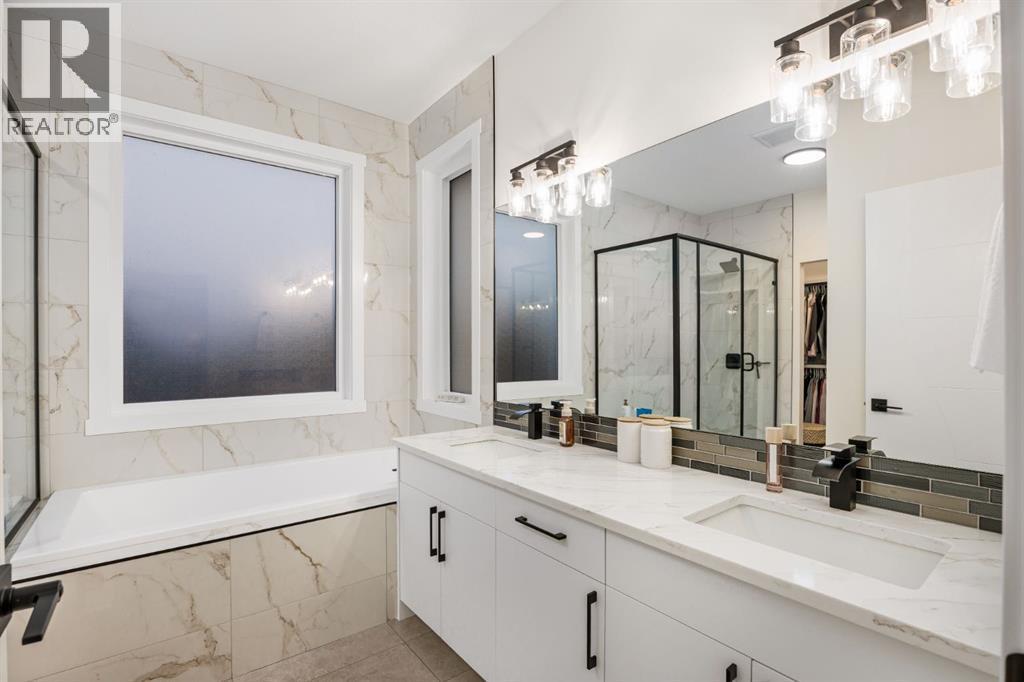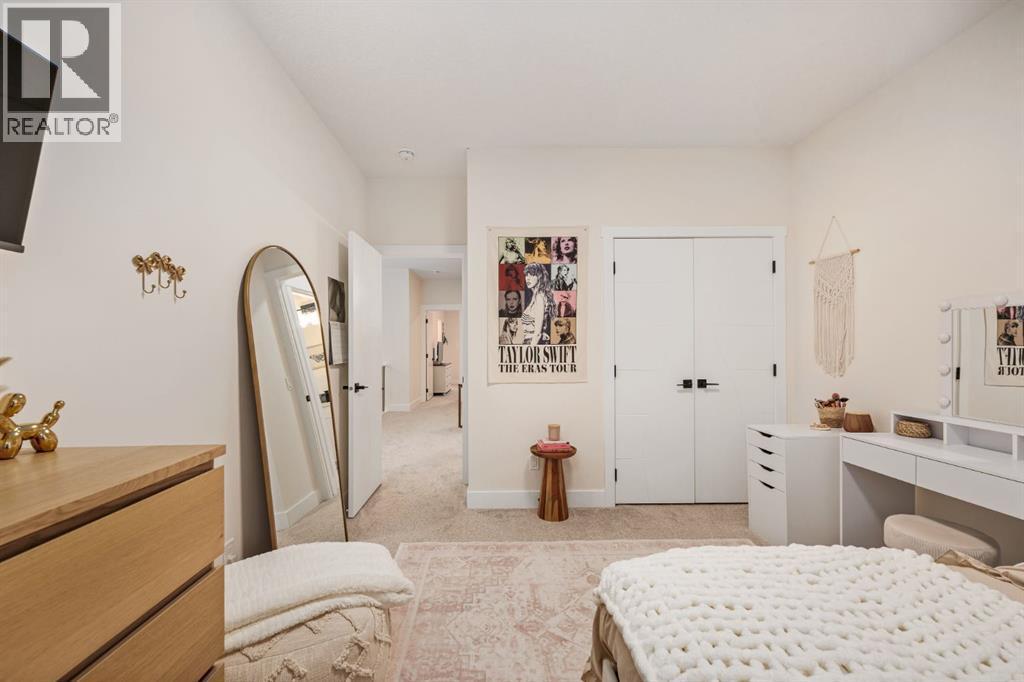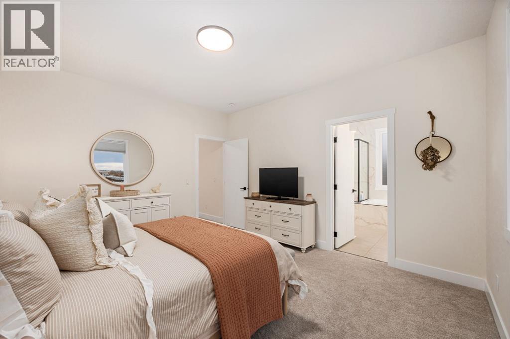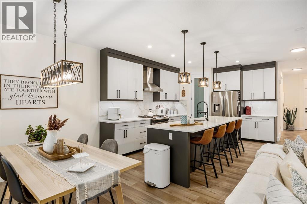 Discover refined living in this impeccably crafted 2024 custom-built two-storey walkout by Shayman Homes, located in the sought-after lake community of Lakewood in Strathmore. Backing onto a lush green space and walking path with no neighbours behind, this east-facing home offers nearly 3,000 sq.ft. of beautifully designed living space with luxury finishes throughout.The striking exterior with stone accents and extended driveway welcomes you into a bright foyer filled with natural light from oversized windows. The main floor features 9’ ceilings and luxury laminate flooring, flowing through a thoughtfully designed layout. A private main-floor office with an 8’ doorway provides the perfect workspace or flex room.The chef’s kitchen is the heart of the home, showcasing an expansive quartz island, soft-close white cabinetry with black hardware, undermount sink, and premium stainless steel appliance package including a gas range, chimney-style hood fan, built-in oversized microwave, dishwasher, and refrigerator with water hookup. A spacious pantry with built-in shelving and automatic lighting adds everyday convenience.The dining and living areas are flooded with natural light and anchored by a stunning floor-to-ceiling stone gas fireplace with custom mantel. Step outside to the covered upper deck spanning the width of the home, complete with recessed lighting, custom glass railings, and a gas line rough-in—ideal for entertaining while overlooking the landscaped yard and park.Upstairs features a vaulted ceiling opening into a massive bonus room, upper laundry with tile flooring and quartz counters, and three generously sized bedrooms. The primary retreat offers a spa-inspired ensuite with dual quartz vanity, 5’ soaker tub, floor-to-ceiling tiled shower, a private toilet room, and a walk-in closet with custom built-ins. A stylish 4-piece bathroom completes the level.The fully developed walkout basement extends the living space with 9’ ceilings, luxury laminate floorin g, a spacious family room, and a custom 10’ wet bar with quartz counters, tile backsplash, and built-in cabinetry. Two large bedrooms, a 4-piece bathroom, mechanical room, and under-stair storage complete the lower level.Outside, enjoy a covered concrete patio, fully landscaped yard, and unobstructed views of the greenspace and playground. Located minutes from schools, amenities, recreation, and golf, with Calgary just 30 minutes away, Lakewood offers a lifestyle unlike any other. Dont miss your opportunity to own this stunning family home. Book your private showing today. (id:6769)
