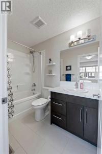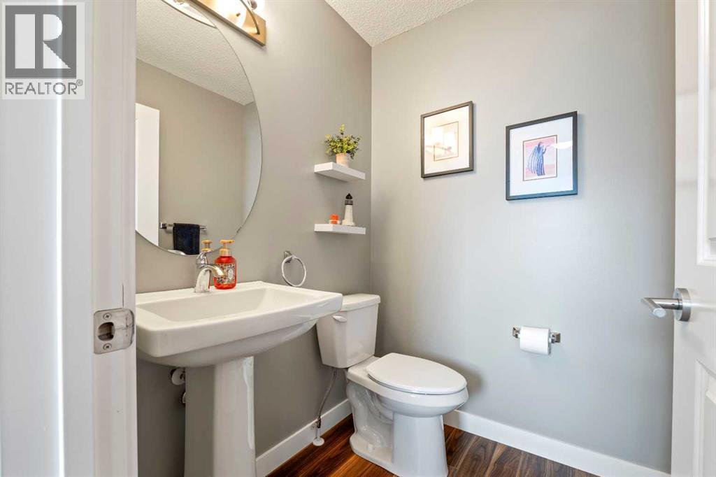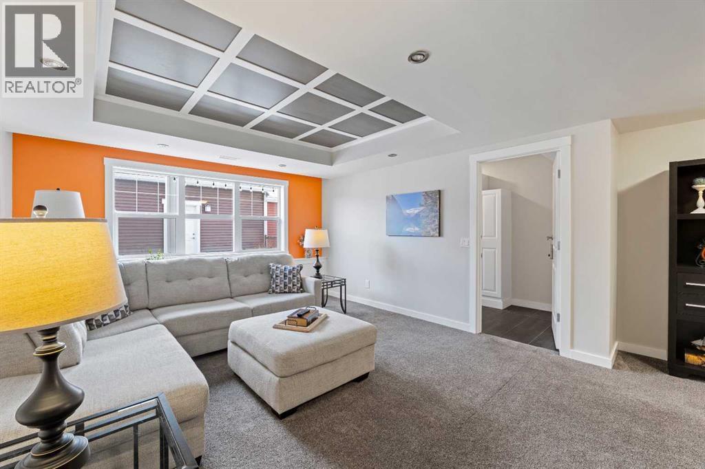 Welcome to 143 Baysprings Terrace! This Brookside-built home with a fully developed walkout basement is sure to impress from the moment you arrive. As you approach, you’re greeted by a spacious west-facing porch — the perfect place to unwind and enjoy beautiful sunsets after a long day. Step inside to discover soaring 9-foot ceilings, an abundance of natural light, and upgraded laminate flooring throughout the main level. The spacious dining area flows seamlessly into the inviting living room and continues into the chef-inspired kitchen, complete with quartz countertops, a massive central island, coffee bar, and ample cabinetry featuring soft-close drawers. A convenient two-piece bathroom and access to the upper deck with a gas line complete the main floor. Upstairs, you’ll find a thoughtfully designed layout featuring two primary bedrooms, each with its own walk-in closet and private four-piece ensuite. A generous bonus/family room with a dedicated computer station separates the bedrooms, while a conveniently located laundry area adds everyday functionality. The fully finished walkout basement is designed for entertaining, offering two separate games and TV areas, custom coffered ceilings, and a stylish dry bar. A dedicated storage room and functional mudroom with built-in storage lead to your private backyard oasis, complete with low-maintenance artificial turf, full fencing, and an additional covered entertaining space. The yard provides access to the oversized double detached garage, offering plenty of room for two vehicles. Additional features include central air conditioning and underground sprinklers. Situated in one of Airdrie’s best self-managed townhouse complexes, this home offers access to nearby paved waterfront walking paths, summer paddleboarding, and winter skating or hockey on the Canals. Conveniently located within walking distance to parks, playgrounds, Nose Creek School (K–4), shopping, dining, and medical offices. Book your showing today! (id:6769)
