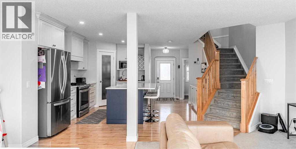 *View cinematic tour in multimedia link* Welcome to this well-maintained detached family home, ideally located just steps from Crystal Shores Lake in sought-after Okotoks. Set on a quiet street with a strong sense of community, this home offers the lake lifestyle people move here for, at a price point that’s becoming harder to find.Residents of Crystal Shores enjoy exclusive access to a private lake and beach, where summer days are spent swimming, kayaking, paddleboarding, fishing, and playing beach volleyball, while winter brings skating and seasonal ice activities. The Beach House also hosts fitness and wellness classes such as yoga, barre, and Zumba, along with social groups, community events, and rentable indoor and outdoor spaces for gatherings, BBQs, and celebrations.Inside, the home features a bright, functional main floor with a cozy living room and gas fireplace, a front den ideal for a home office, and a fully renovated kitchen complete with quartz countertops, stainless steel appliances, a 5-burner gas stove, oversized island with extra storage, and a corner pantry. Upstairs offers a spacious bonus room, two additional bedrooms, a full bathroom, and a comfortable primary retreat with mountain views, walk-in closet, and ensuite. The basement is drywalled and ready for future development or added storage.Recent updates include a high-efficiency two-zone heating system, a newer hot water tank, and long-life 40-year shingles. The west-facing backyard features a large deck, mature trees, a paved lane with room to add a garage, and a dedicated dog run. Close to river pathways, parks, schools, the Okotoks Recreation Centre, local favourites, and with easy north-end access for commuting, this is a rare opportunity to enjoy true lake living in a community people love to call home. (id:6769)