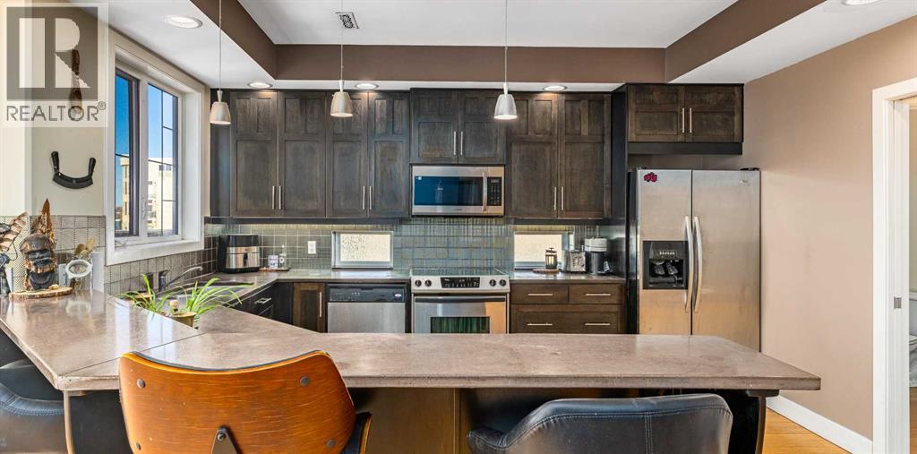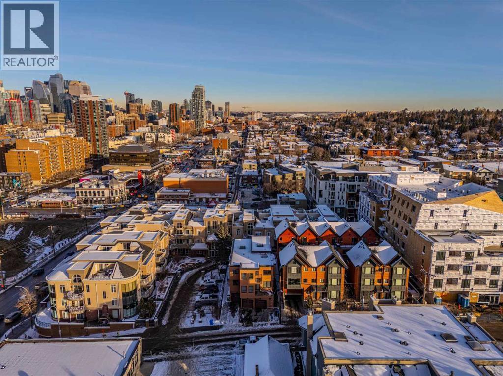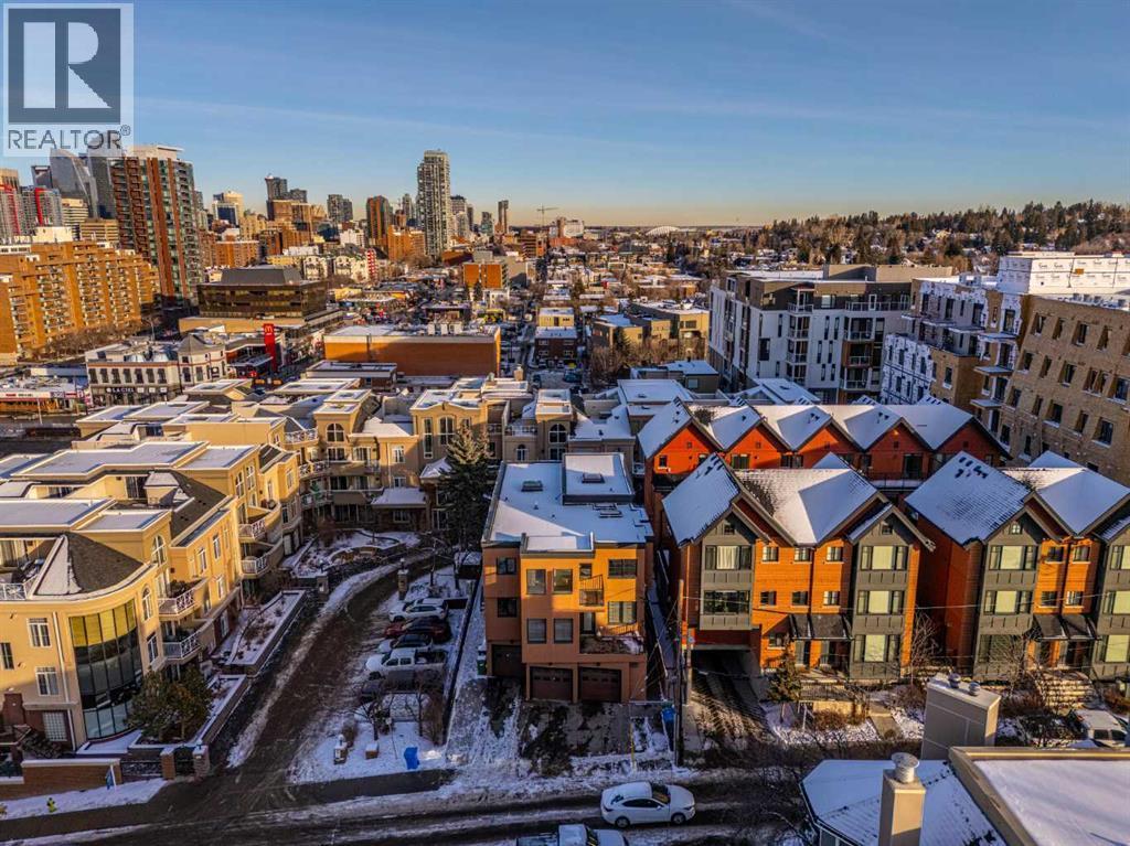 This spacious and unique 3-storey executive townhouse is quietly positioned in the heart of Bankview, offering an exceptional 10/10 inner-city location just steps from the energy, dining, and nightlife of 17th Avenue SW and the everyday convenience of 14 Street SW. Walk everywhere, commute downtown in minutes, and enjoy being surrounded by Calgary’s best cafés, shops, transit routes, and entertainment, all while still feeling tucked away and residential. This is true urban living done right. This home confidently leans into what makes it exceptional: two fireplaces, two balconies, and two skylights, a thoughtful combination that brings warmth, architectural interest, and incredible natural light throughout. From the moment you enter, you’re welcomed by a spacious front foyer with mudroom-style functionality and generous storage, creating a practical and polished arrival experience. Head up one level and the property continues to surprise. The wide open-concept main living area flows effortlessly, wrapped in windows and enhanced by tall ceilings that create a bright, airy atmosphere across all levels. Designed for both comfort and connection, the main floor features hardwood flooring and a striking two-way fireplace with custom built-ins anchoring the living and dining spaces. The contemporary kitchen is finished with stainless steel appliances, concrete countertops, and a functional breakfast bar. A private west-facing balcony off the living room extends the space outdoors, perfect for morning coffee or evening unwinding. Completing this level is a convenient and well-located half bath, ideal for guests and everyday living. The upper levels continue the home’s thoughtful design and flexibility. As you head upstairs, you’re greeted by a beautiful skylight that fills the space with natural light, complemented by oversized windows throughout that create a bright, open atmosphere. The primary suite is a true retreat with its own fireplace, dual closets, and a spa-inspir ed ensuite featuring double sinks, a soaker tub, steam shower, and an additional skylight that brings in even more sunshine. A generous second bedroom is paired with a versatile flex room, ideal as a home office, fitness area, or third bedroom, opening onto a southwest-facing balcony for added light and outdoor connection. A full upper-level main bathroom and conveniently located laundry complete this level, rounding out a layout that’s both functional and beautifully designed. Currently tenanted, this property offers a strong opportunity for investors seeking a turnkey inner-city rental, while also appealing to buyers looking to make it their own. With downtown minutes away, quick access along 14th Street, and a vibrant entertainment district nearby, this location supports long-term demand and lifestyle appeal. Add low-maintenance living, low condo fees, and true lock-and-leave convenience, making it ideal for busy professionals, frequent travelers, and hands-off investors alike. Book a tour today! (id:6769)