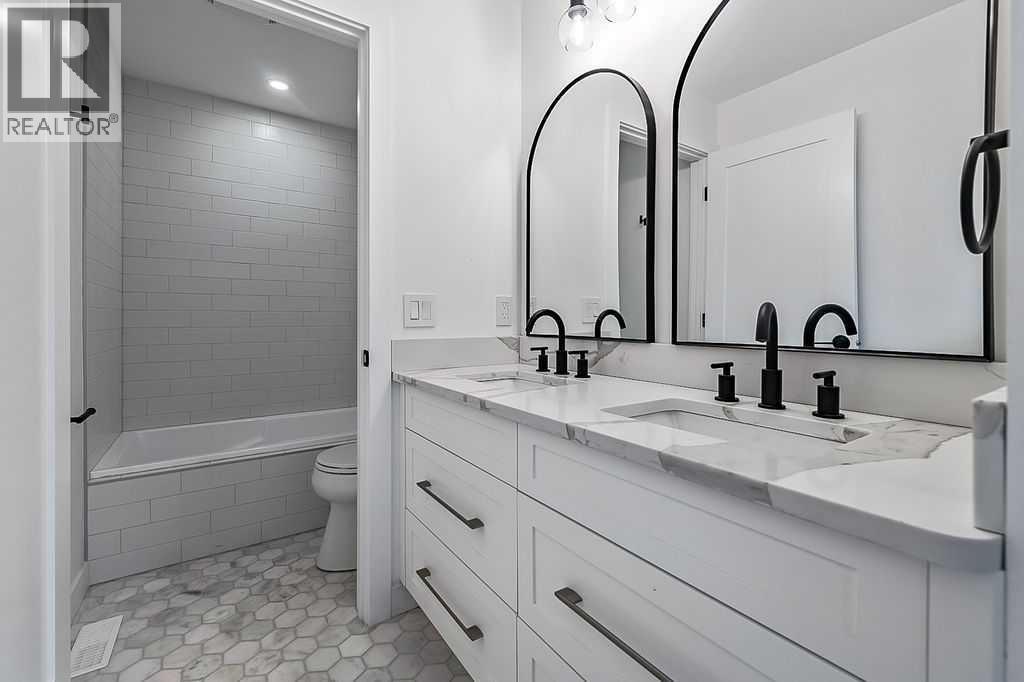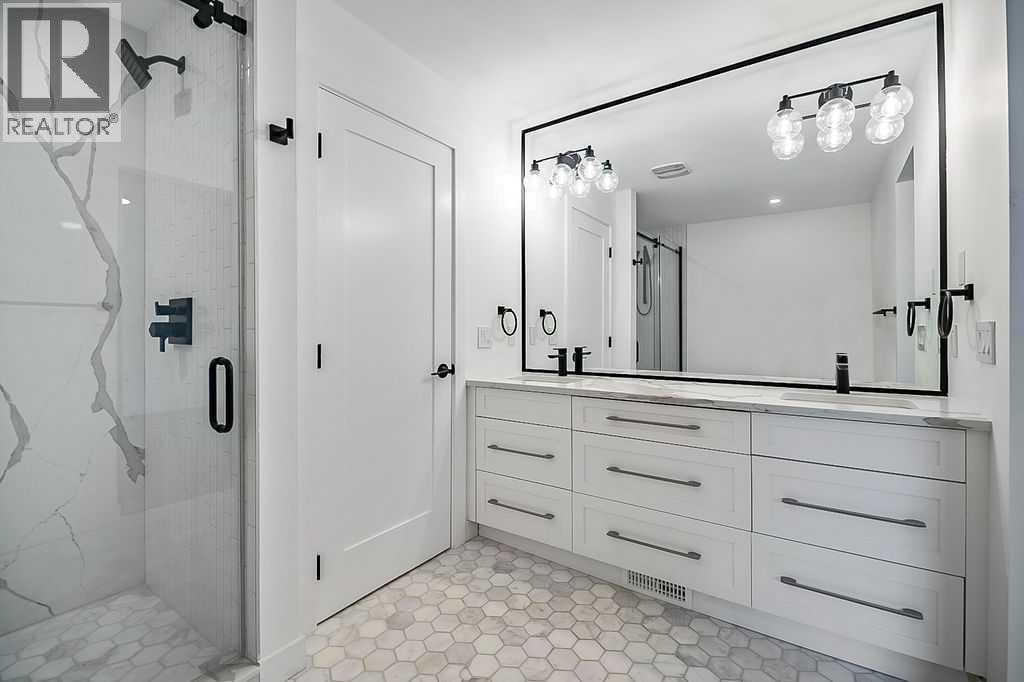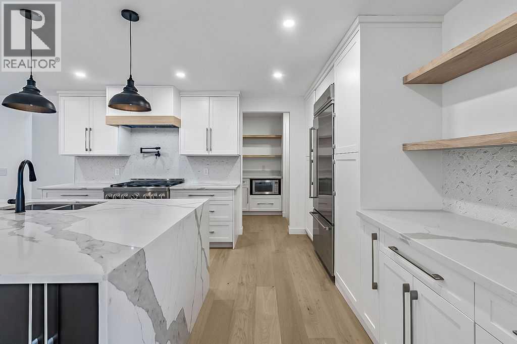 Welcome to an exclusive bungalow nestled in the prestigious community of Lake Bonavista. Boasting over 3400 SQ FT of living space and a front AND back double garage, this luxurious residence is within walking distance to the lake, local schools, shopping and Fish Creek Park nearby. As you enter, soaring vaulted ceilings greet you and run through the living room with gorgeous fireplace to the contemporary loft space. The custom kitchen boasts real wood cabinetry, dovetail drawers, premium quartz counters, a massive island and is flanked by a flex space and a butler pantry. A glass-enclosed wine feature and dinette cabinetry sit just off the dining room which opens out to a bbq area and backyard. The main bathroom exudes elegance, with a custom dual vanity, in-floor heated marble tile, and sits perfectly beside two bedrooms that boast a unique loft space that could be developed to multiple future uses. The primary suite offers a spacious layout, a large walk-in closet, and a luxurious ensuite with a freestanding soaker tub, marble tile, custom double vanity, and a dual shower framed by an exotic backlit illuminated quartz. The basement is an entertainer’s dream with a living room, wet bar, bathroom with walk-in shower, flex room, and two additional bedrooms. The front and backyards await your touch and are ready to take advantage of the supplied personalized landscaping package. Meticulously renovated down to the studs, this home features upgraded insulation, new electrical and plumbing, smart switches, engineered hardwood, and all new doors, trim, and paint. No expense has been spared in creating this luxurious masterpiece, don't miss your chance to make it yours! (id:6769)