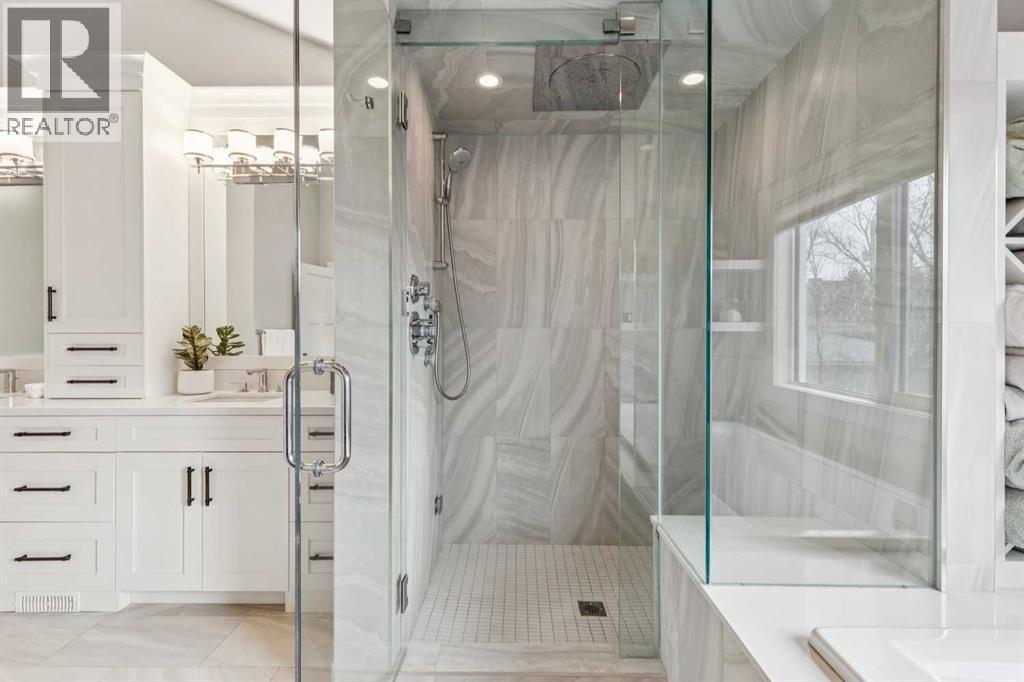 Welcome to 419 47 AV SW, a truly magnificent estate home privately nestled within a highly desirable, quiet, tree-lined residential enclave of Elboya. Graced with 2,635 sq. ft. of harmoniously appointed living space, this home is a testament to timeless design and custom craftsmanship, meticulously crafted by Trademark Renovations. Every room blends luxurious sophistication with thoughtful functionality. The open-concept main floor flows seamlessly, anchored by the professional-grade kitchen—designed as the home's epicenter. This space effortlessly transitions into the formal dining area and the expansive living room, which looks onto the stunning remodeled outdoor living space, perfect for hosting gatherings of all sizes. The main level is completed by a meticulously curated oversize executive office, featuring custom built-ins including a convenient Murphy bed for versatile guest accommodation. Ascend to the upper level to discover the impressive primary wing, a private escape in itself. It boasts soaring vaulted ceilings, a charming juliet balcony, a captivating two-way fireplace, heated floors, and a rejuvenating steam shower. A spacious laundry room, two generous children's rooms, and a well-appointed shared bathroom complete this floor. The exceptional lower level continues to impress, offering an entertainer's dream: a custom wet bar equipped with a wine fridge and dishwasher, a spacious family room featuring a retractable projector screen and movie theater quality audio system. This level also includes a large fourth bedroom and a full third bathroom. Completing this stunning residence is a custom-designed, oversized, heated garage, offering ample space for vehicles and all your storage needs. This stunning family home boasts an unbeatable location: steps to Elboya park, two blocks from Elboya School, and five blocks from the Community Center. Experience the ideal family lifestyle where everything is within easy reach! Be sure to explore the 3D Virtual Open House Tour and request the comprehensive detailed upgrade list for a full appreciation of this spectacular offering. (id:6769)