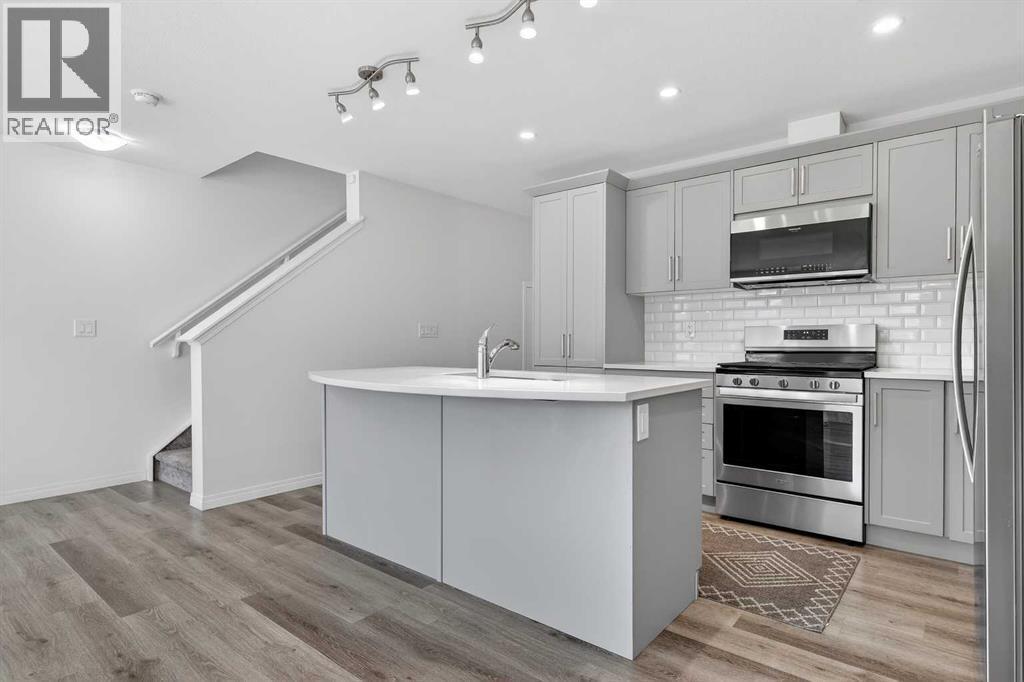 Welcome to 50 Yorkville Blvd SW — a like-new, move-in-ready townhome in SW Calgary offering a smart layout, quality upgrades, and an unbeatable location in a family-friendly, walkable community.This 3 bedroom, 2.5 bathroom home features 1,441 sq ft of functional living space plus an unfinished basement with incredible potential. Inside, enjoy triple-pane windows and upgraded zebra blinds throughout, luxury vinyl plank flooring, knockdown ceilings, and a bright open-concept main floor. The stylish kitchen offers stainless steel appliances including a gas stove, a large center island with eating bar, subway tile backsplash, and soft-close cabinetry. The dining area and spacious living room create the perfect flow for daily living and entertaining. A half bath and mudroom with built-in shelving and coat hooks add everyday convenience.Upstairs, you’ll find a spacious laundry room with LG washer/dryer and shelving, a large linen closet, and three generous bedrooms. The primary suite includes a west-facing balcony with Duradek, a massive walk-in closet, and a 5-piece ensuite with dual vanities and a fully tiled, floor-to-ceiling tub shower combo. A second 4-piece bath also features a tiled tub shower combo and full-sized vanity.Built for efficiency and comfort with Hardie board siding, a high-efficiency furnace, and electric hot water heater. The double attached garage offers secure parking, and the large unfinished basement is ready for future development.Perfectly located with direct access to 22X, Stoney Trail, and Macleod Trail, near Spruce Meadows, Fish Creek Park, walking paths, parks, and shopping at Silverado Marketplace and Shawnessy Towne Centre.A fantastic investment property or family-friendly home in a connected SW community. (id:6769)