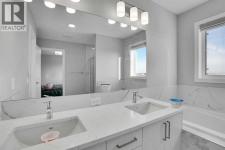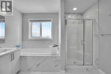 Experience modern luxury living in the Livingston area with the Collingwood model Excel home, featuring high-end finishes and a legal walkout basement suite. The unique exterior is a showstopper, complemented by a modern, functional design and contemporary finishings. Flooded with natural light, this home boasts beautiful finishings throughout. Located in the most sought-after part of Livingston, this excel-built home offers ample square footage and private views. Inside, a bright and spacious living room/dining room awaits, perfect for entertaining, alongside a chef's dream kitchen with upgraded stainless steel appliances, quartz counters, soft-close cabinetry, a chimney-style hood fan, a built-in microwave. The functional floor plan includes a flex room, four bedrooms plus a bonus room on the upper level, ideal for family living. The primary bedroom features a 5-piece ensuite and large walk-in closets, while the other bedrooms share a 4-piece bath. A conveniently located laundry room is just off the bonus room. The custom-built home also includes a two-bedroom open-concept legal suite with stainless steel appliances, quartz counters, and in-suite laundry. Registered with the city, the suite meets all legal requirements, including separate furnace and water tank. Additional highlights include the Alberta New Home Warranty, a newly built deck, upgraded pot lights, and air conditioning. Nestled in Livingston's heart, this incredible home is minutes from major shopping centers. Enjoy the epitome of luxury living! (id:6769)