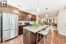 Open House -- Sunday Feb 8, 12-2 (come see it before the Superbowl) & Sunday Feb 15, 1-3 -- Welcome to Ravenswood - quiet streets, parks and pathways, and close proximity to shopping, dining, schools. This lovingly maintained 2-bedroom, 1.5 bath townhome is ideal for downsizing, first-time buyers, or investors. This home has an attractive open concept layout and a quaint private backyard. The bright main floor flows from the living area to the dining space and kitchen. The kitchen features trendy rich cabinetry, quartz counters, an electric stove, dishwasher, and microwave hood fan, plus plenty of counter space for cooking and entertaining. Don't forget about the adorable half bath. Upstairs, you’ll find two HUGE bedrooms. The Primary has room for your King Bed, lots of Furniture and Workout Equipment. The Main Bath is a cheater suite flowing to the WIC and Primary Bedroom. Additional storage can be found in the attic with a pull down staircase allowing access. Fresh paint throughout, Air Conditioning and upper floor laundry make this home a dream! Enjoy your fenced backyard, perfect for BBQs, gardening, or watching your children play. This property includes a dedicated parking stall. Condo fees include snow removal, landscaping, and insurance. 2 pets allowed. Make it yours today! (id:6769)