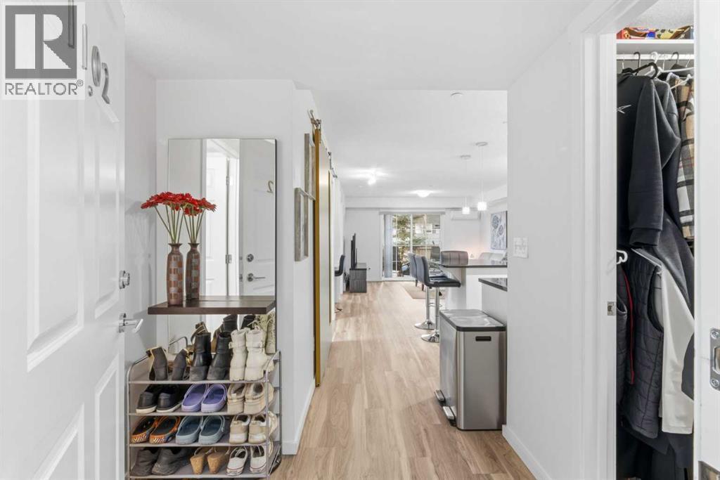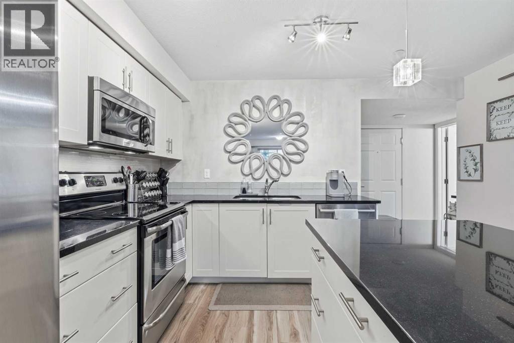 Set in Copperfield Park, this bright TWO bedroom, ONE bath home offers a rare sense of space and privacy thanks to its thoughtful layout and direct access to green space. The kitchen anchors the home with granite countertops, stainless steel appliances, ample pantry storage, and a generous island that works just as well for morning coffee as it does for casual dinners. From here, the living area flows naturally toward the back of the unit, creating a comfortable, open feeling space that easily accommodates both lounging and dining without feeling crowded. What truly sets this home apart is the private patio that opens directly onto green space. Step outside and enjoy the feeling of having your own yard but without the maintenance. With a gas BBQ hookup ready for summer evenings, this outdoor space becomes a natural extension of your living area, making the home feel larger, quieter, and more private than most condos. The primary bedroom is bright and calming, while the second bedroom features a built-in Murphy bed, offering flexibility as a guest room, home office, or both. A full bathroom, in-suite laundry, and excellent storage add everyday practicality. Located close to the building entrance and elevators, the titled underground parking stall and storage locker are easily accessed. With a park across the street, plenty of visitor and street parking, and quick connections to Stoney Trail and Deerfoot, this is a well-positioned home close to shopping, dining, and amenities in 130th Avenue, McKenzie Towne, and Mahogany. (id:6769)