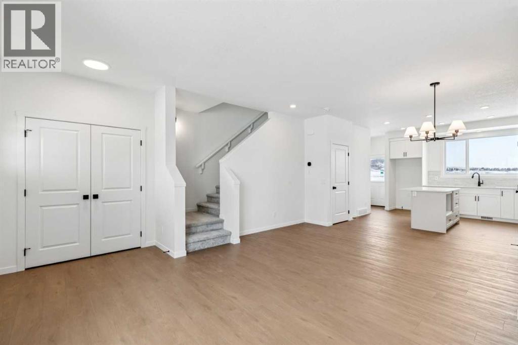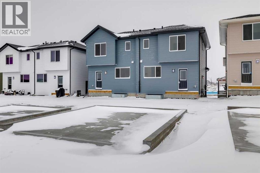 This duplex built by Daytona Homes features an open concept main floor with plenty of natural light. A rear kitchen with ample storage, along with a central island make this ideal for entertaining and home cooking. Upstairs are 3 nice sized bedrooms including a primary with ensuite, double vanity, and a walk in closet. A laundry closet with shelving completes the upper floor for added convenience. The basement is unfinished, but a side entry, 9' foundation, and bathroom rough in are all included for future needs. Plenty of backyard space, and a concrete parking pad backing onto the rear lane complete the back yard. Photos are representative. (id:6769)