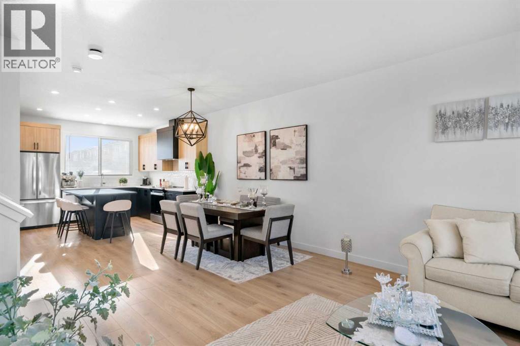 *** Home Sweet Home*** Welcome to this move-in ready 2024 Jayman BUILT House in the vibrant community of Ambleton NW. Offering 1444 sq. ft. of thoughtfully designed living space, this detached home features 3 bedrooms and 2.5 bathrooms with an open-concept layout ideal for modern living.The main floor highlights a gourmet kitchen with quartz countertops, central island with flush eating bar, stainless steel appliances including French door fridge with ice maker, designer hood fan, and microwave. The bright dining area and spacious Great Room are complemented by large windows for abundant natural light. A 2-piece bath and rear mudroom complete the level.Upstairs offers three generous bedrooms, full main bath, convenient upper laundry, and a primary suite with walk-in closet and 3-piece ensuite. The basement includes 9’ ceilings, separate side entrance, and 3-piece rough-in for future development (subject to city approval).Built with Jayman’s Core Performance features including 10 solar panels, Built Green Canada certification with EnerGuide rating, triple-pane windows, UV-C air purification system, high-efficiency furnace with HRV, Navien tankless hot water heater, quartz throughout, 12 x 10 composite deck, smart home package, rear BBQ gas line, and completed front landscaping. Ideally located near parks, future schools, shopping, and quick access to Stoney Trail. (id:6769)