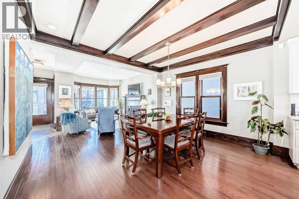 Wonderful 2 Story Character Home that has been Updated while keeping the Charm with Wide Wood Window & Door Casings & Headers and Tall Wood Baseboards. All of this Matching the Original Beamed Ceiling above the Dining Room. Main Level has an Open Floor Plan with 9 Foot Ceilings, Hardwood Floors and a Bright East Facing Livingroom with a Great Gas Fireplace for those Cool Winter Nights! Fabulous Kitchen with Granite Countertops, a Large Granite Island, an Abundance of White Cabinets, a Gas Stove and Stainless Steel Appliances. There are 3 Bedrooms upstairs with a full Bathroom with Granite countertop. Off the master Bedroom is a Lovely Sunroom with Downtown Views! In the Lower Level you will find a Spacious Rec Room, Storage Room , Laundry room and another Full Bathroom with Granite Countertop. The Outstanding Outdoor Entertaining Area with West Facing Backyard that has A large Deck, Hot Tub, Detached Double Garage and Minimalist Landscaping. Book your viewing of this "Stylish, Distinctive Home in a Coveted Neighborhood " (id:6769)