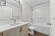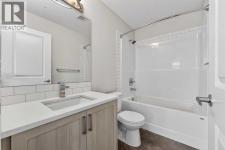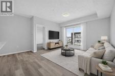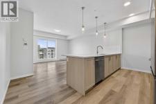 Welcome to this modern fourth-floor condo in the growing community of Carrington, built by Cedarglen in 2024. This bright and thoughtfully designed 2 bedroom, 2 bathroom unit offers approximately 780 sqft of well-used living space, ideal for first-time buyers, downsizers, or anyone looking for a low-maintenance lifestyle in a newer building. The open-concept layout features a stylish kitchen with quartz countertops, stainless steel appliances, ample cabinetry, and a large island that flows seamlessly into the living area. Large windows bring in plenty of natural light and lead out to an east-facing balcony, perfect for enjoying morning sun and fresh air with a bit more privacy and elevation than lower-level units. The primary bedroom includes a full ensuite and generous closet space, while the second bedroom is well-sized and conveniently located near the second full bathroom, making it ideal for guests, a home office, or roommates. Neutral finishes throughout make the space feel clean, modern, and easy to personalize. Located in a well-planned new community with easy access to parks, pathways, shopping, and major routes, this unit offers a great balance of comfort, convenience, and value in northwest Calgary. (id:6769)