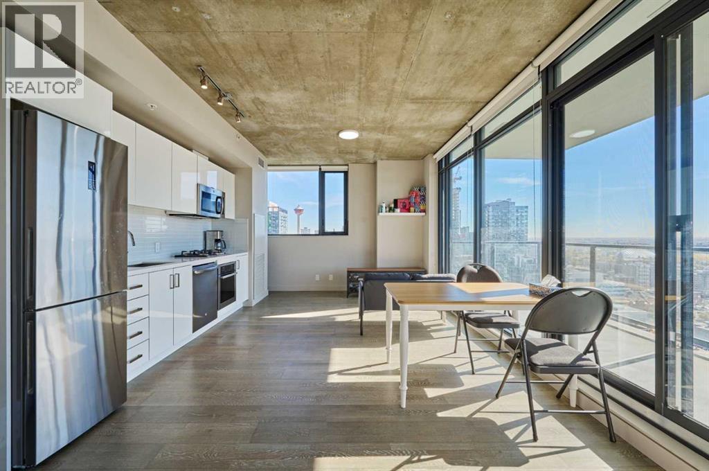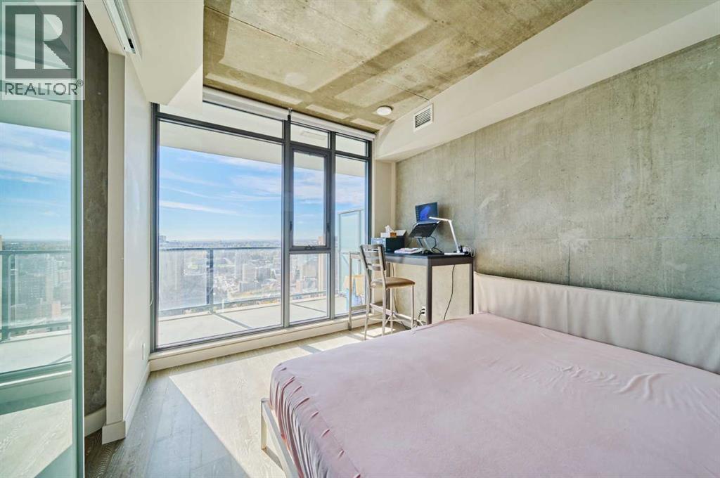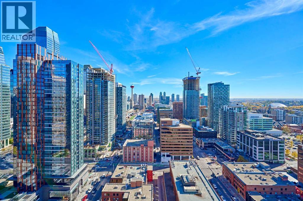 Investors calling! welcome to this newly built south facing appartment unit located in the heart of downtown calgary. convenient to do everything in your daily life. this amazing two bed, 1 bath unit located on the 24th floor of the 6th and tenth building, The views here are spectacular, with both unobstructed South-West visibility of the mountains and fulsome city skyline to the east. As impressive as the panoramic sightseeing, the condo is equally as stunning and incredibly functional. You'll immediately notice the mix of industrial and modern finishes, the warm hardwood floors, and the floor to ceiling windows flooding the space with natural light. The kitchen features high gloss cabinetry, quartz counters, subway tile backsplash, built-in stainless steel appliances and built in gas range and oven. The highlights of the primary bedroom are full views Calgary tower and downtown skyline, and a loft-like feel with concrete walls and ceiling finish. The closet is outfitted with custom wardrobes to optimize space and functionality. The 4 piece bathroom has a neutral and calm colour palette paired with bright hardware- it standouts to other units with upgraded, custom shower glass doors. The good sized second bedroom also features wardrobe organizers, floor to ceiling windows, and full sight of the Rocky Mountains. This second bedroom is versatile and can also be utilized as an amazing work from home space. The sliding glass door is dually functional as a private barrier and whiteboard. In-suite full-sized laundry, titled underground parking, and separate titled storage space complete the package. The building amenities are top notch and include an executive concierge, overnight weekend security, a luxurious owners lounge, fitness room, plunge pool with a large common area deck, bike storage and visitor parking. 6th & Tenth is located in the lively Beltline community and close to all the downtown business, shopping & eating districts. Whether this is an investment prop erty (Air BnB Allowed!) or a primary residence, you don’t want to miss this opportunity to own this sleek city condo! (id:6769)