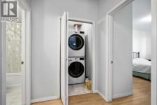 Move-in ready and showing excellent, this renovated top-floor unit is located in a secure building with elevator access and offers low condo fees that include all utilities. The open-concept layout features a spacious living room and kitchen, with sliding patio doors leading to a good-sized, southwest-facing covered balcony—ideal for relaxing or entertaining. The unit includes a large bedroom, in-suite laundry with a 2025 washer and dryer, assigned surface parking, and the added benefit of no unit below. Conveniently situated close to bus routes, schools, shopping, LRT, and the Genesis Centre. Very easy to show and a must-see property. (id:6769)
