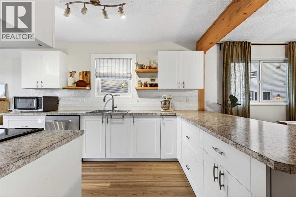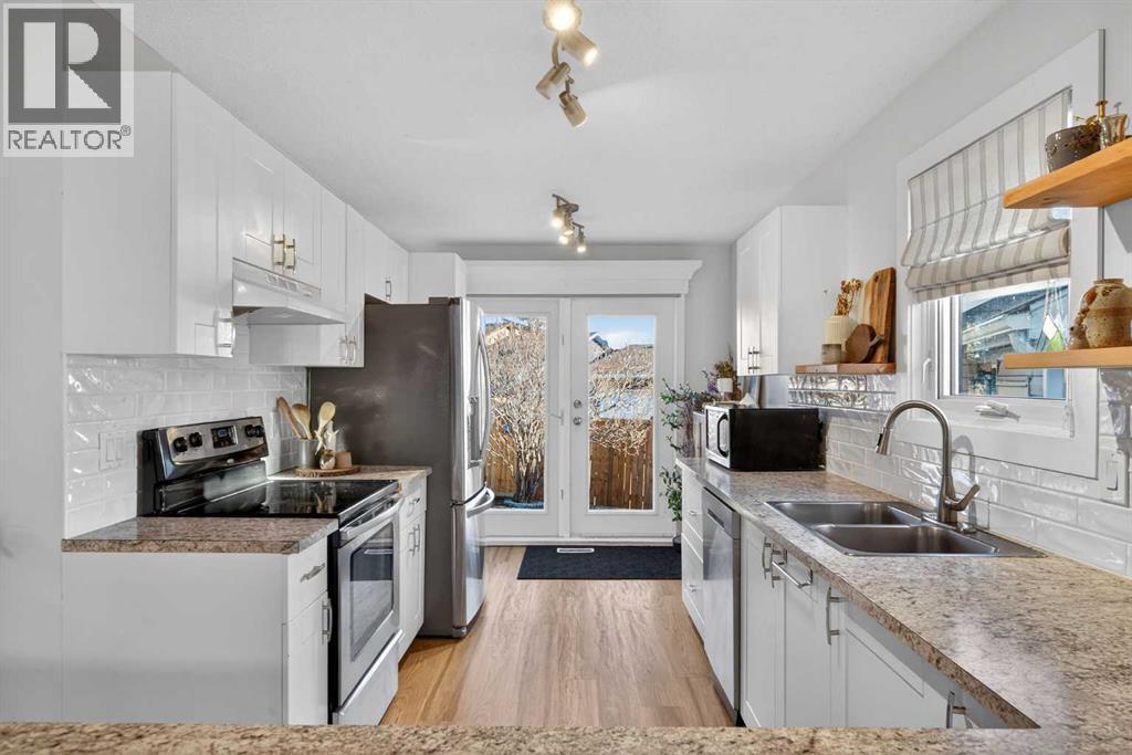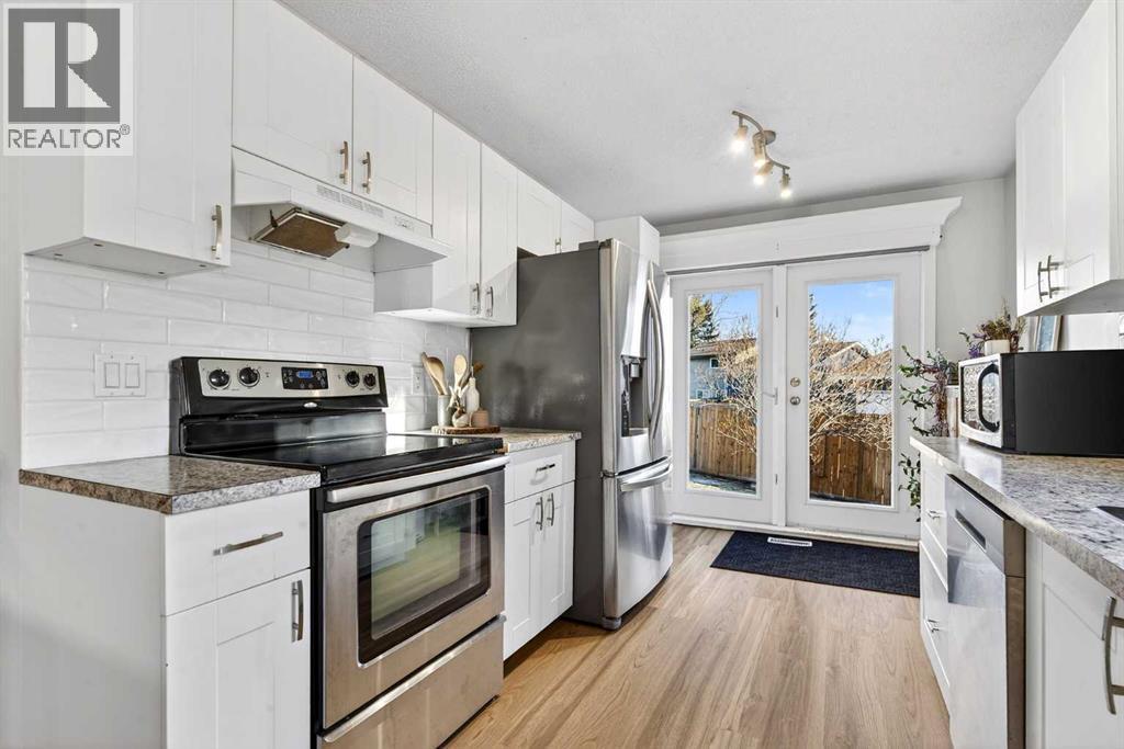 This well-maintained home offers thoughtful updates and a functional layout designed for comfortable living. The main floor features three bedrooms and an updated four-piece bathroom, complemented by luxury vinyl plank flooring and refreshed lighting throughout. The living room is bright and inviting, anchored by a large northwest-facing window. The updated kitchen showcases white cabinetry, stainless steel appliances, a modern backsplash, ample pantry storage, and direct access to the deck and backyard. The fully developed basement expands the home’s versatility with laminate flooring, a spacious recreation room, a three-piece bathroom, a den or additional storage space, and a large dedicated laundry room, all finished with a functional drop ceiling. Recent updates include the washer and dryer (2023), hot water tank (2023), main water valve (2023), garage siding (2023), and updated flooring (2025) on both the main and lower levels, offering peace of mind for the next owner. Outside, the southeast-facing backyard benefits from being a pie-shaped lot, complete with a wood deck and plenty of room to relax, garden, or host gatherings. A single detached garage with alley access adds everyday convenience. Tucked away on a quiet cul-de-sac, this home is within walking distance to the Deer Run School, Deer Run Community Centre with baseball fields and tennis courts, the Deer Ridge Off-Leash Area, and the extensive pathways of Fish Creek Provincial Park. Plus, great schools are a short walk or drive away. With quick access to major thoroughfares including Deerfoot Trail, Stoney Trail, and Macleod Trail, commuting throughout the city is efficient and straightforward. Don’t miss the opportunity to own a well-cared-for home in one of Calgary’s most established communities. (id:6769)