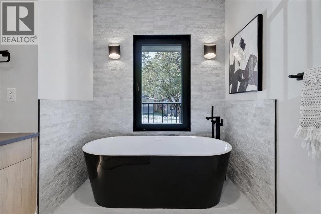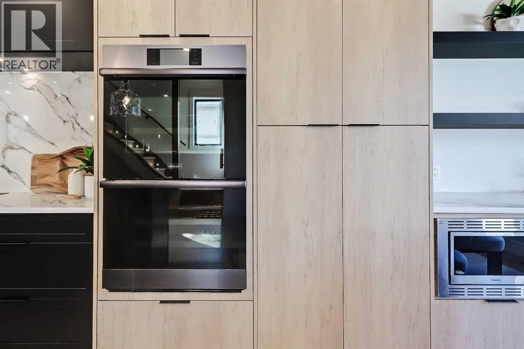 Tile detailing, modern finishes, designer lighting package, upgraded German-made KULU windows & doors…it’s everything you’re looking for in a luxury 3-STOREY SEMI-DETACHED INFILL! Now MOVE-IN READY, this designer home is located just off 26th Ave in the heart of Killarney – the ideal location for your new family home! The main floor opens into a welcoming foyer w/ built-in closet & bench, offering views into the spacious living room w/ a gas fireplace w/ full-height tile, as well as a stunning wood-panelled feature wall. Beautiful oak hardwood flooring leads you into the open-concept kitchen – fully equipped w/ an oversized island w/ quartz countertop, timeless shaker-style cabinetry w/ numerous lower drawers, & a contemporary flat-panel built-in cabinetry pantry. The designer kitchen is nicely finished w/ a full stainless steel appliance package, complete w/ a panelled French door refrigerator, a Dacor double wall oven, a gas cooktop w/ pot filler, & a built-in dishwasher. The custom built-ins continue into the dedicated dining room, w/ open shelving & lower cabinets w/ quartz counter for everyday convenience. Step out onto the back deck through the rear mudroom, complete w/ a built-in bench, coat cabinet, & tile flooring. Before you head upstairs, the stylish powder room is tucked away w/ a beautiful skirted vanity & vessel sink. Up the bright stairwell w/ glass wall awaits the primary suite – as sleek & modern as the rest of the home, w/ oversized windows, a private balcony w/ KULU door, & an extra-large walk-in closet! The chic ensuite features a dual vanity w/ a quartz countertop & a bank of lower drawers, a freestanding soaker tub, & a stand-up shower w/ full glass walls, rain showerhead, & bench. Two secondary bedrooms share the main 4-pc bath & the laundry room features a sink, upper cabinetry, hanging rod, tile backsplash, & a folding counter. A luxury home isn’t complete without a THIRD FLOOR LOFT, & this space has not been overlooked. More oversized windo ws bring in lots of natural light, shining across a spacious rec area w/ gas fireplace, full wet bar w/ extended quartz countertop, bar sink, & statement open shelving. A lovely sitting area w/ built-in desk overlooks the COVERED BALCONY & of course, there’s a full bath w/ fully tiled shower, too. The living space continues into the basement, w/ a full wet bar w/ quartz island, dual basin sink, & a designer tile floor, w/ a large family room, built-in media centre, a glass walled home gym w/ sports flooring, a 4th bedroom, & a full 4-pc bath. Killarney offers the perfect balance of community & convenience. From here, you’re within walking distance to Glendale School, Killarney School, & Bishop Carroll High. Westbrook Mall & the CTrain are only 5 minutes away, making downtown access effortless. The Killarney Aquatic & Recreation Centre, Optimist Athletic Park, & Shaganappi Golf Course are all nearby. Call to view today! (id:6769)