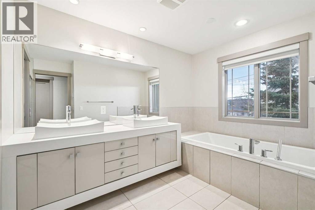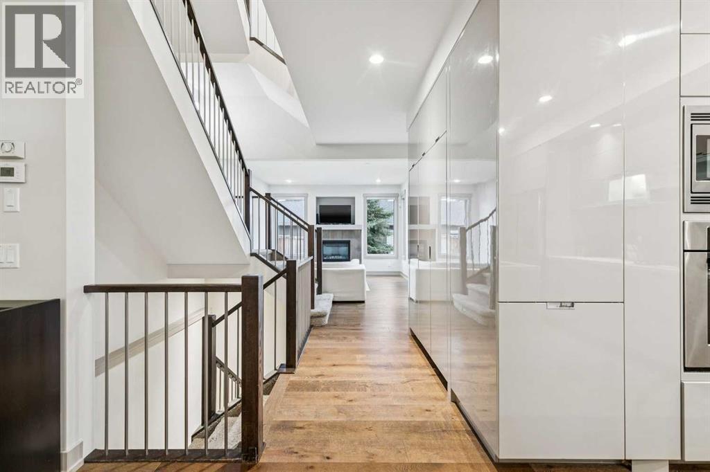 * SEE VIDEO * Located on a prime corner lot in the heart of Altadore, just steps from schools, parks, shops, cafés, and restaurants, this stunning home offers 3,031 sq ft of thoughtfully designed living space with 4 bedrooms plus a loft and 4 bathrooms — delivering space, convenience, and an unbeatable inner-city lifestyle.The main floor showcases engineered hardwood throughout, featuring a spacious front living room, separate dining area, and a rear family room highlighted by a striking gas fireplace with porcelain tile surround. The high-end kitchen is designed to impress with full-height high-gloss cabinetry with BLUM soft-close hinges and slideouts, quartz countertops, island seating, exceptional storage, and premium appliances including a Bosch wall oven, wall microwave, dishwasher, Samsung touchscreen fridge, and gas range. A custom powder room vanity completes the main level.Upstairs, the primary suite is a true retreat with a luxurious 5-piece ensuite offering in-floor heating, dual sinks, spa tub, separate shower, and water closet. Two additional bedrooms, a 4-piece bathroom, and convenient laundry room complete the second level. The bright and open third-level loft is ideal for a home office, studio, or bonus living space.The fully developed basement features a large rec room, bedroom, and 4-piece bathroom, providing even more versatile living space. Notable upgrades include central air conditioning, aggregate walkways, a double detached garage, and landscaping.Set along charming tree-lined streets with walkable access to Marda Loop and quick proximity to downtown, this exceptional home is a must-see. Book your private showing today! (id:6769)