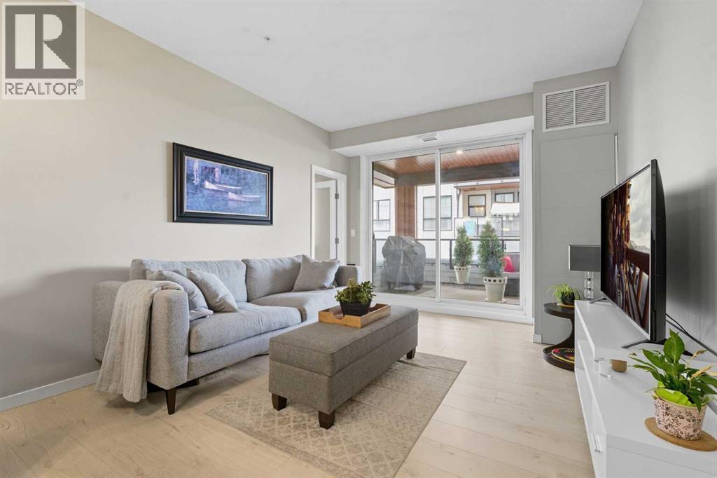 Lake Living Meets Elevated Comfort in Mahogany | Welcome to Calligraphy at Westman Village, nestled in the heart of Mahogany—Calgary’s premier lake community. This beautifully designed two-bedroom condo offers a functional layout, thoughtful upgrades, and access to truly unmatched, resort-style amenities. The open-concept living space is bright and inviting, anchored by a modern kitchen featuring stainless steel appliances, stone countertops, and a generous peninsula ideal for casual dining or entertaining. Just off the kitchen, the oversized laundry room provides exceptional additional storage and easily functions as a walk-in pantry. The living and dining areas connect seamlessly, creating a comfortable setting for both everyday living and hosting friends. The versatile second bedroom works equally well as a guest room or home office, while the primary suite offers a large window, walk-in closet, and convenient access to the stylish four-piece bath. Central air conditioning ensures year-round comfort. Step outside to a massive, covered private balcony—perfect for morning coffee, evening wine, or relaxing outdoors in any season. Westman Village sets a new standard for condo living with amenities rarely found elsewhere: an indoor pool with waterslide, full fitness centre, golf simulator, wine cellar, theatre room, demonstration kitchen, workshop, concierge service, and vibrant social spaces. Beyond your door, enjoy Mahogany Lake’s beaches, pathways, parks, shops, and dining. Complete with secure underground parking, this home offers a seamless blend of convenience, recreation, and community—ideal for professionals, downsizers, or anyone looking to embrace an active, connected lifestyle in one of Calgary’s most sought-after neighbourhoods. (id:6769)