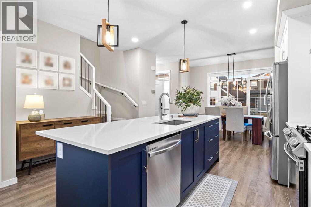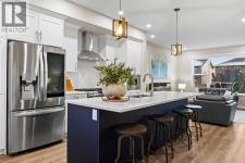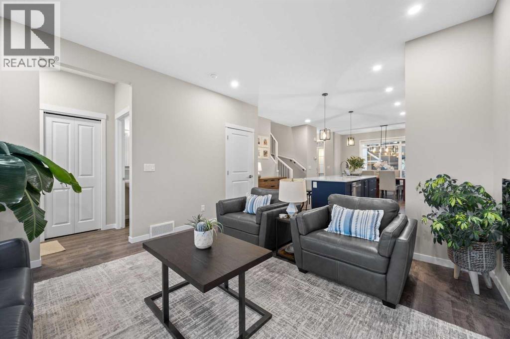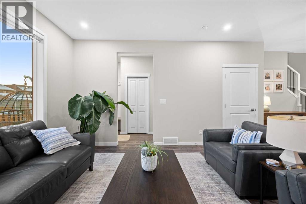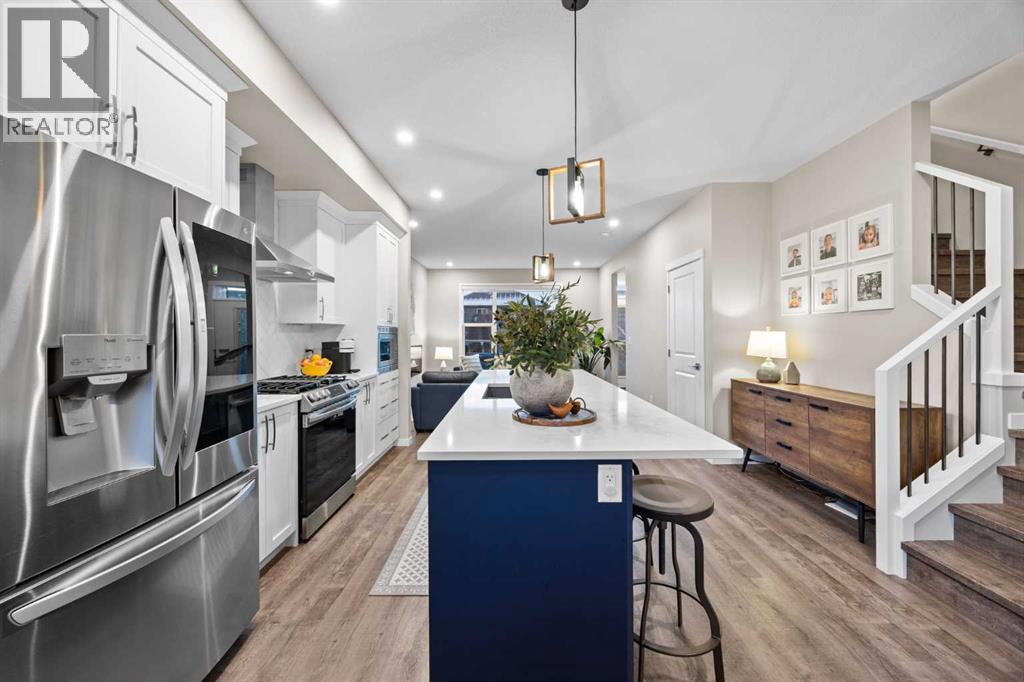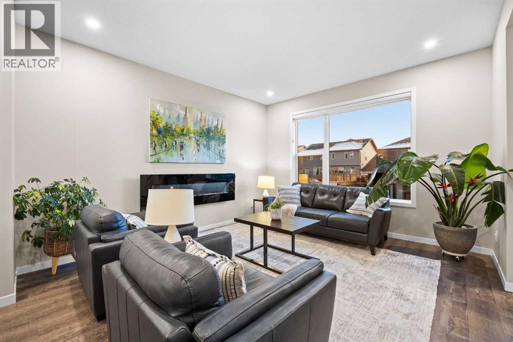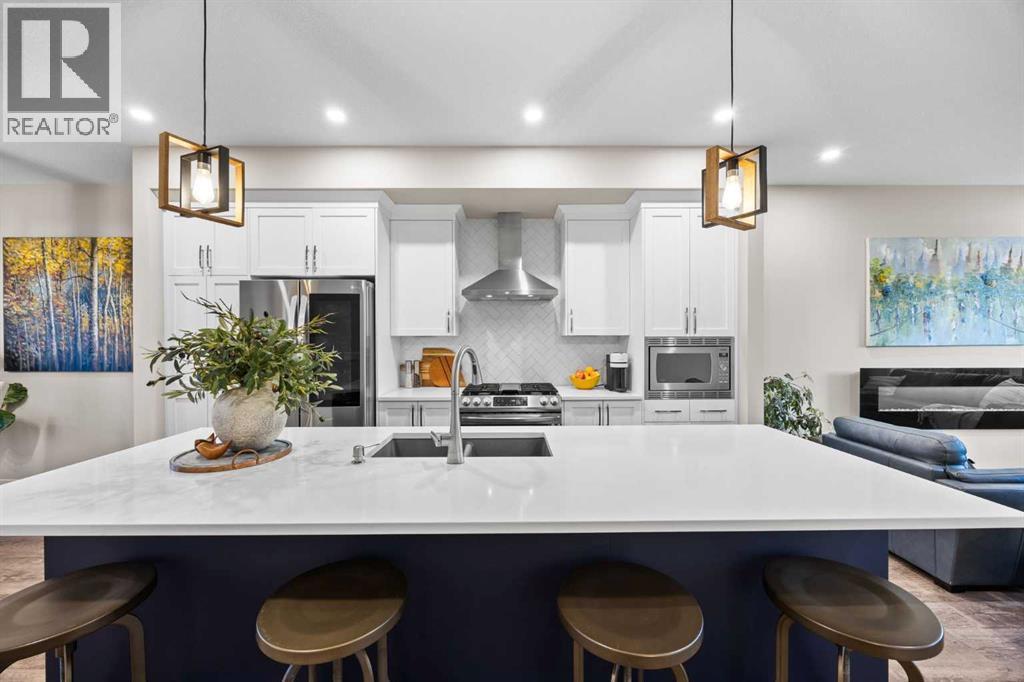 *OPEN HOUSE FEB 8, 12-2PM* Highly upgraded throughout, professionally finished basement with side entrance and illegal suite potential, south facing backyard with massive composite deck, NO CARPET, transferable new home warranty!! Welcome to this immaculately cared for home, conveniently located on the north side of Okotoks - commuting to Calgary is a breeze. Offering a bright and open main floor with a spacious dining area, central kitchen with 2 tone cabinetry, quartz countertops, upgraded appliances - including gas range and built-in microwave. The spacious living room has an electric fireplace, big south facing window and extra pot lights. The main floor also offers a 2 pc bathroom and access to the SOUTH FACING backyard with 2 tiered composite deck that leads to the double detached garage with epoxy flooring. Upstairs you’ll enjoy the double primary layout separated by a bonus room and laundry room with added storage. Both bedrooms have ensuite bathrooms - upgraded to quartz countertops. The professionally finished basement has a convenient side entrance that leads down to the large living room with an electric fireplace and feature wall. There is an L shaped kitchen with sink, fridge and 220v wiring. An additional bedroom with a large window and full bathroom with tiled shower, washer/dryer hookups and under stair storage complete this space. The home also features a water softener, custom window coverings throughout (2 main floor windows are motorized), BBQ gas line, exterior gemstone track lighting and a landscaped front yard with stone patio - no grass to cut here! (id:6769)